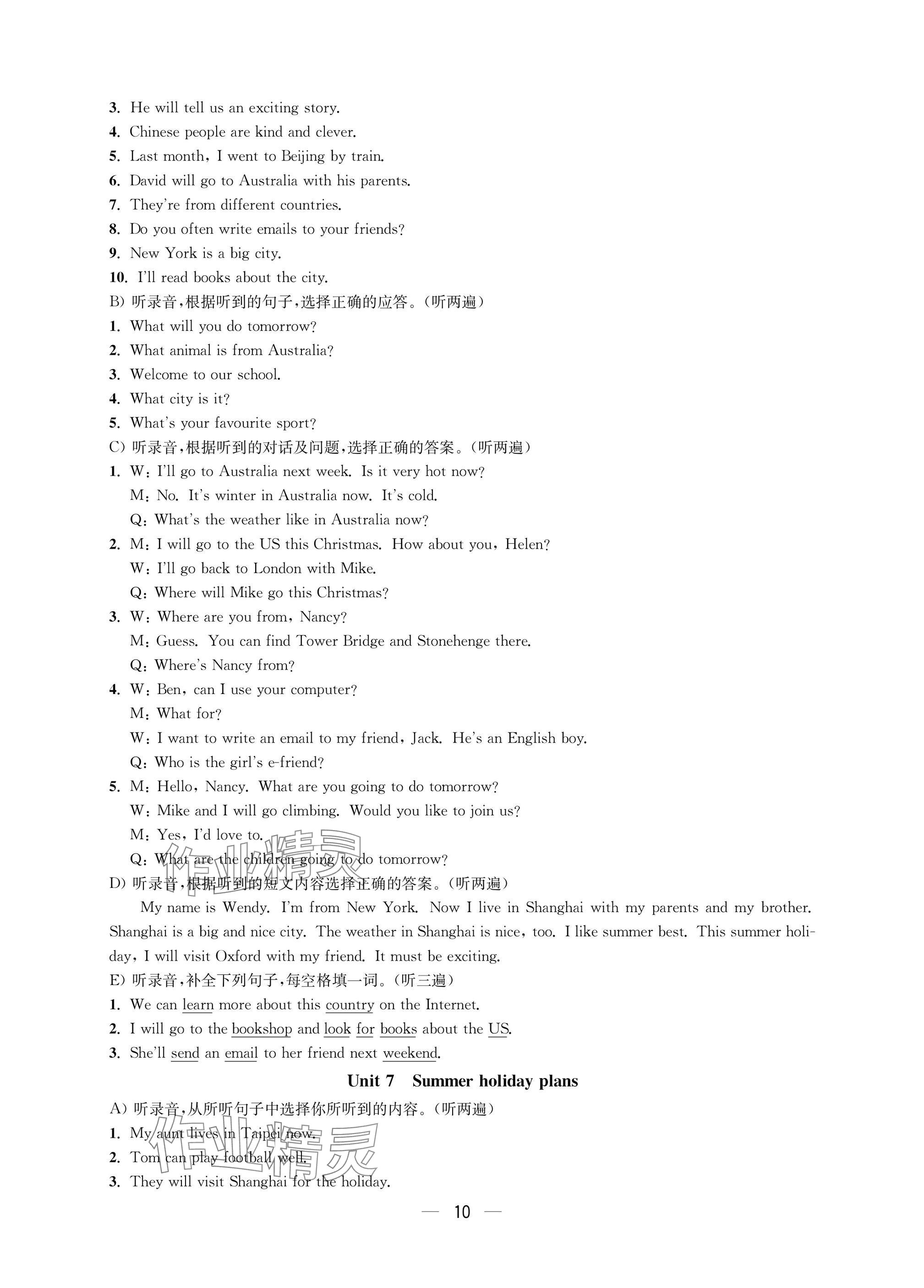 注:目前有些书本章节名称可能整理的还不是很完善,但都是按照顺序排列的,请同学们按照顺序仔细查找。练习册 2025年层层递进六年级英语下册译林版 答案主要是用来给同学们做完题方便对答案用的,请勿直接抄袭。