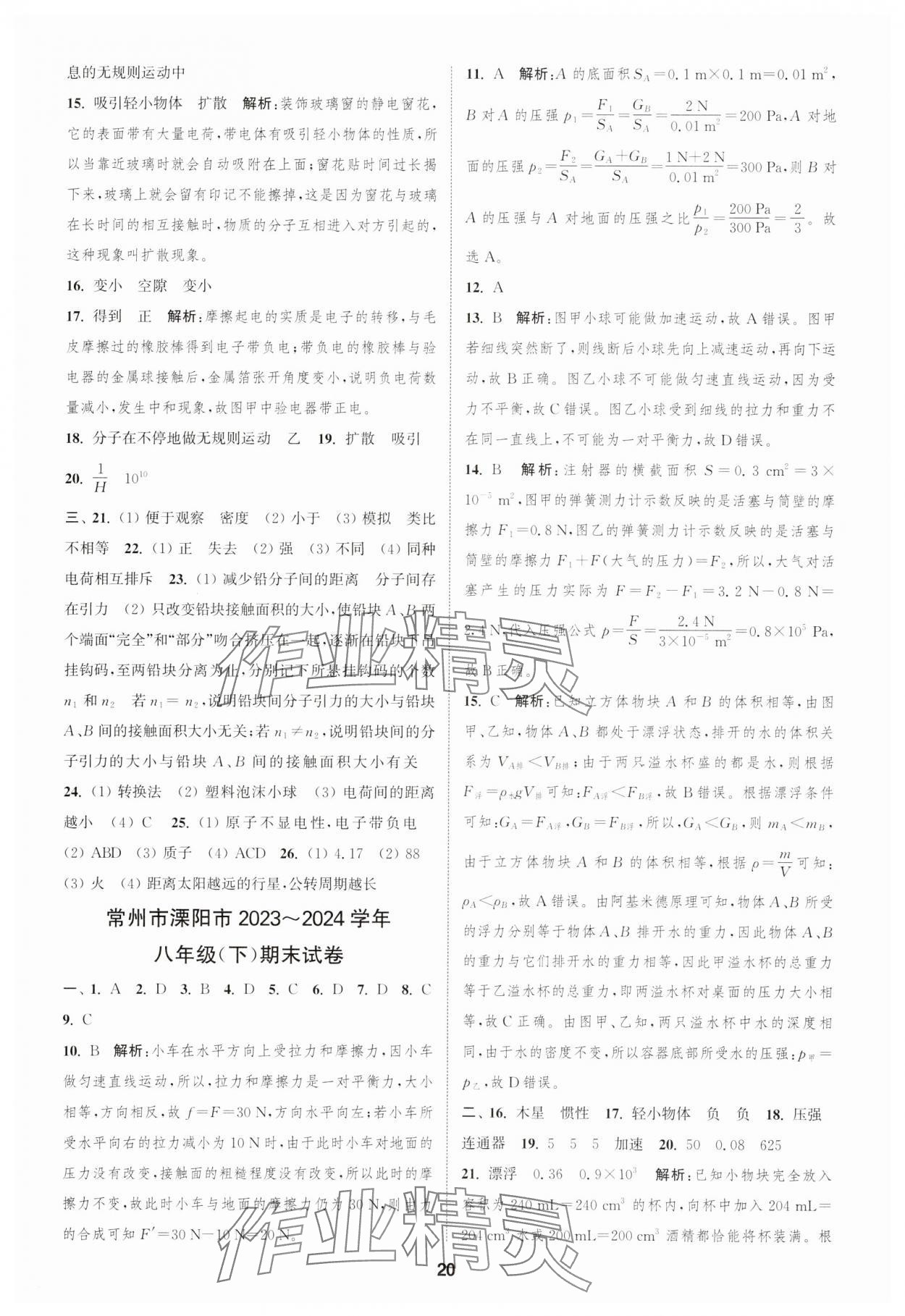 注:目前有些书本章节名称可能整理的还不是很完善,但都是按照顺序排列的,请同学们按照顺序仔细查找。练习册 2025年通城学典全程测评卷八年级物理下册苏科版 答案主要是用来给同学们做完题方便对答案用的,请勿直接抄袭。