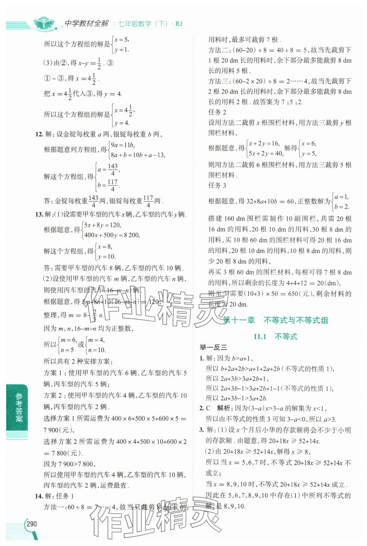 注:目前有些书本章节名称可能整理的还不是很完善,但都是按照顺序排列的,请同学们按照顺序仔细查找。练习册 2025年教材全解七年级数学下册人教版 答案主要是用来给同学们做完题方便对答案用的,请勿直接抄袭。