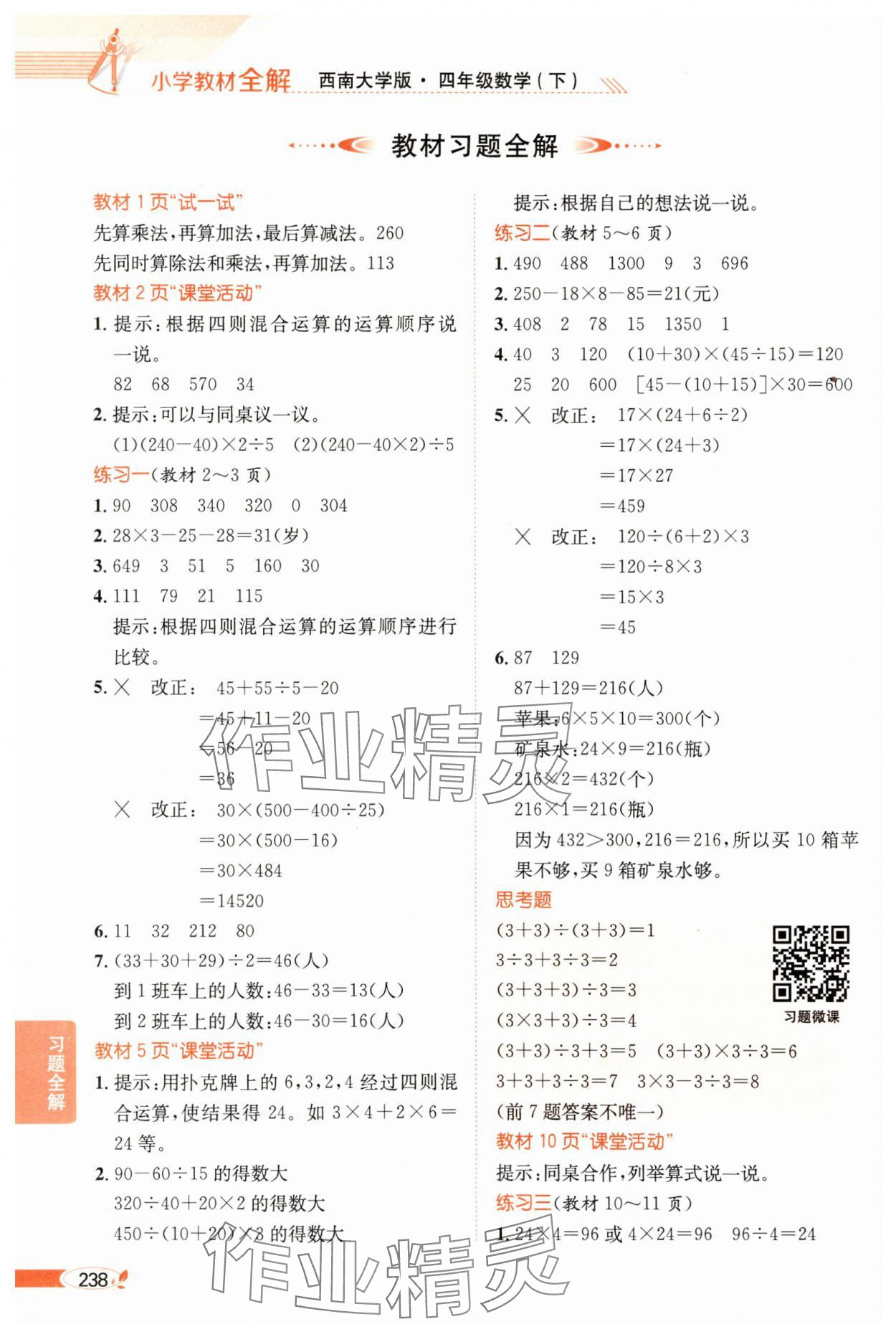 注:目前有些书本章节名称可能整理的还不是很完善,但都是按照顺序排列的,请同学们按照顺序仔细查找。练习册 2025年教材全解四年级数学下册西师大版 答案主要是用来给同学们做完题方便对答案用的,请勿直接抄袭。