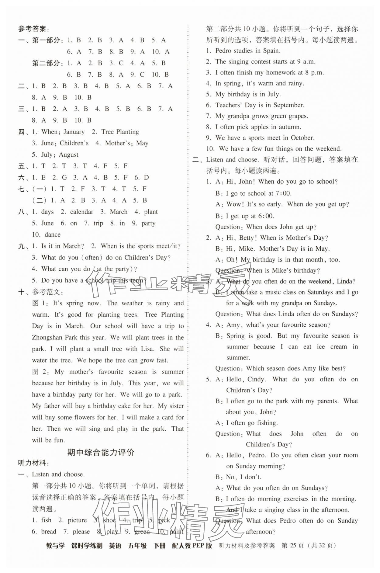 注:目前有些书本章节名称可能整理的还不是很完善,但都是按照顺序排列的,请同学们按照顺序仔细查找。练习册 2025年教与学课时学练测五年级英语下册人教版 答案主要是用来给同学们做完题方便对答案用的,请勿直接抄袭。