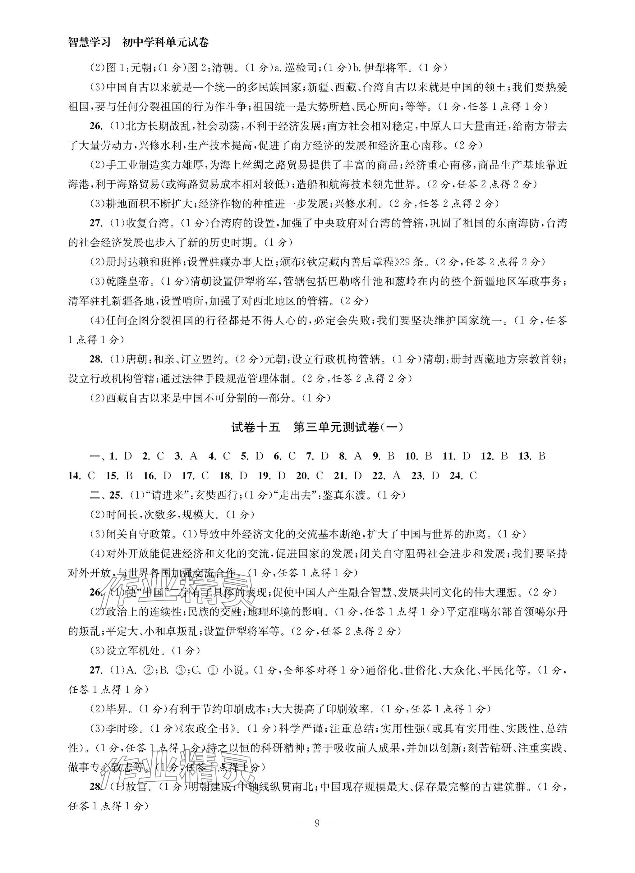 2025年智慧学习初中学科单元试卷七年级历史下册人教版