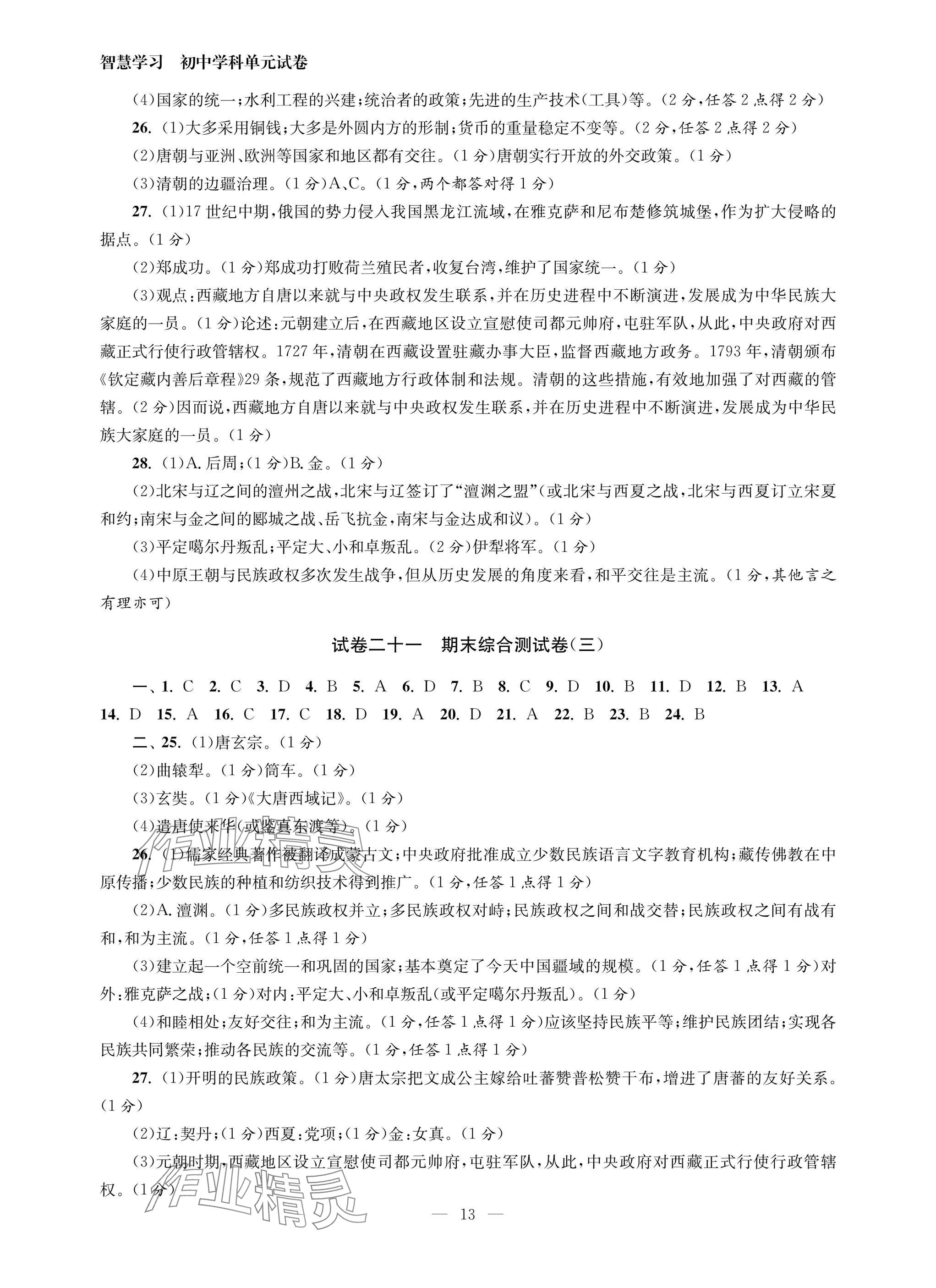 2025年智慧学习初中学科单元试卷七年级历史下册人教版