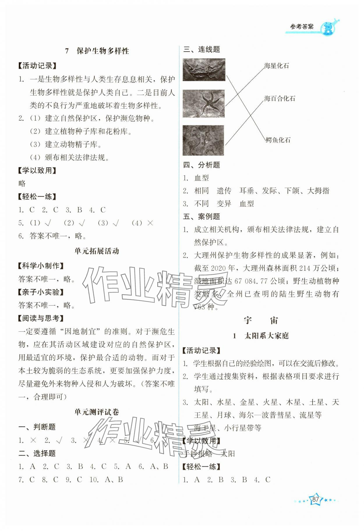 注:目前有些书本章节名称可能整理的还不是很完善,但都是按照顺序排列的,请同学们按照顺序仔细查找。练习册 2025年能力培养与测试六年级科学下册教科版 答案主要是用来给同学们做完题方便对答案用的,请勿直接抄袭。
