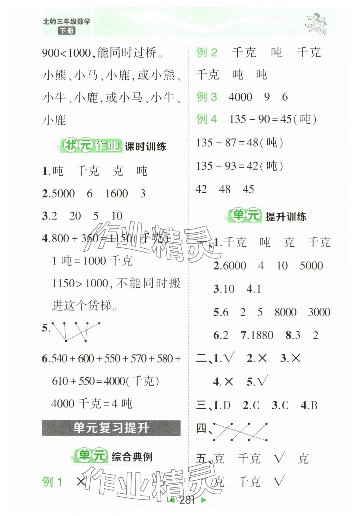 注:目前有些书本章节名称可能整理的还不是很完善,但都是按照顺序排列的,请同学们按照顺序仔细查找。练习册 2025年黄冈状元成才路状元大课堂三年级数学下册北师大版 答案主要是用来给同学们做完题方便对答案用的,请勿直接抄袭。
