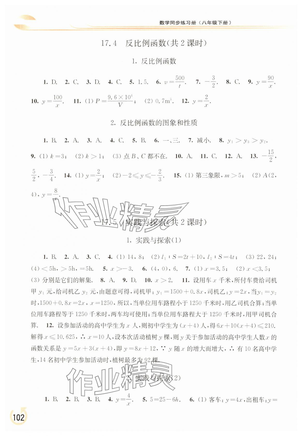 注:目前有些书本章节名称可能整理的还不是很完善,但都是按照顺序排列的,请同学们按照顺序仔细查找。练习册 2025年同步练习册华东师范大学出版社八年级数学下册华师大版重庆专版 答案主要是用来给同学们做完题方便对答案用的,请勿直接抄袭。
