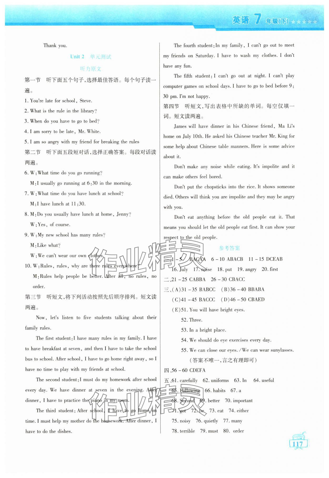 注:目前有些书本章节名称可能整理的还不是很完善,但都是按照顺序排列的,请同学们按照顺序仔细查找。练习册 2025年名师点津七年级英语下册通用版 答案主要是用来给同学们做完题方便对答案用的,请勿直接抄袭。