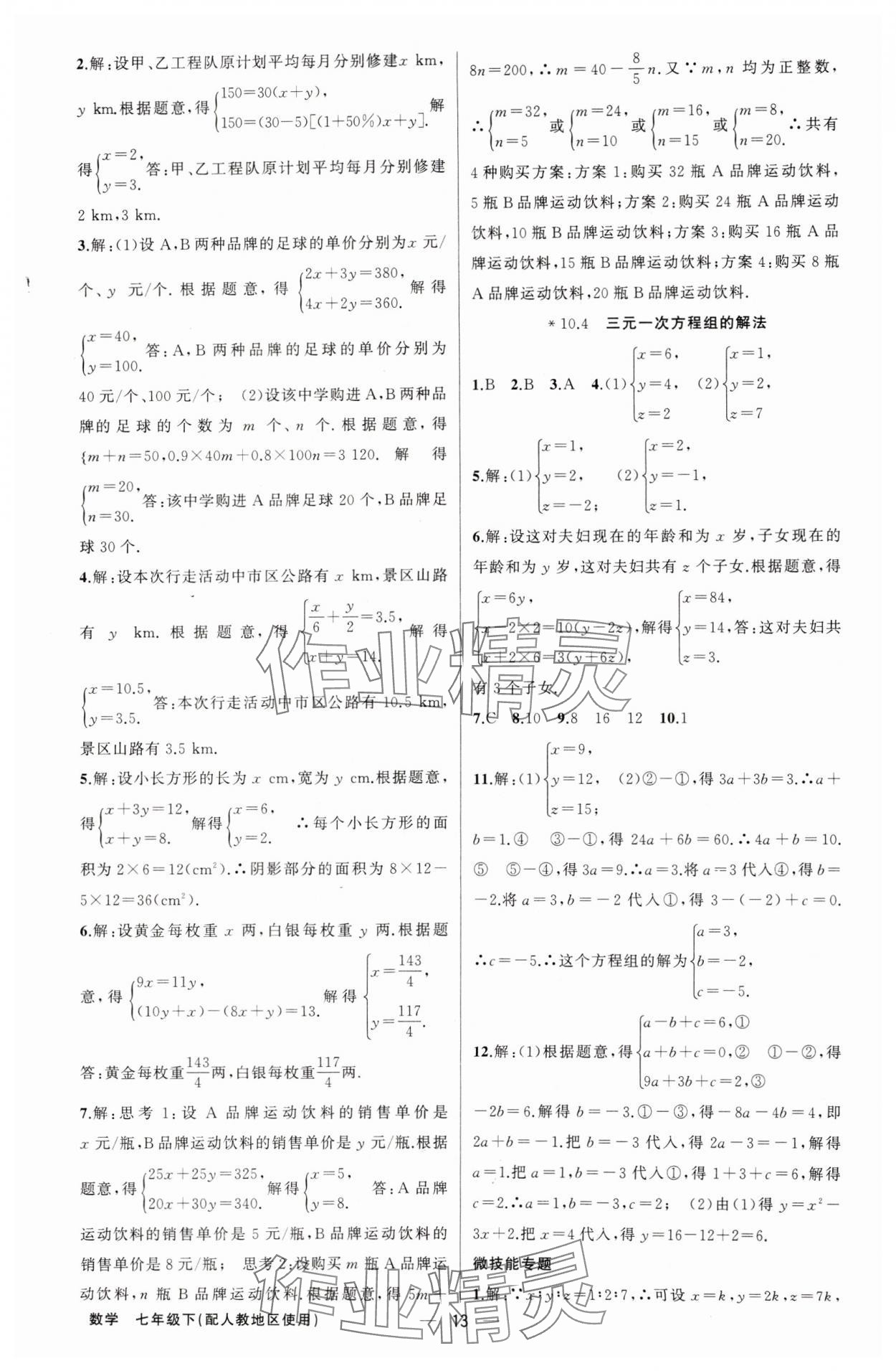 注:目前有些书本章节名称可能整理的还不是很完善,但都是按照顺序排列的,请同学们按照顺序仔细查找。练习册 2025年黄冈金牌之路练闯考七年级数学下册人教版 答案主要是用来给同学们做完题方便对答案用的,请勿直接抄袭。