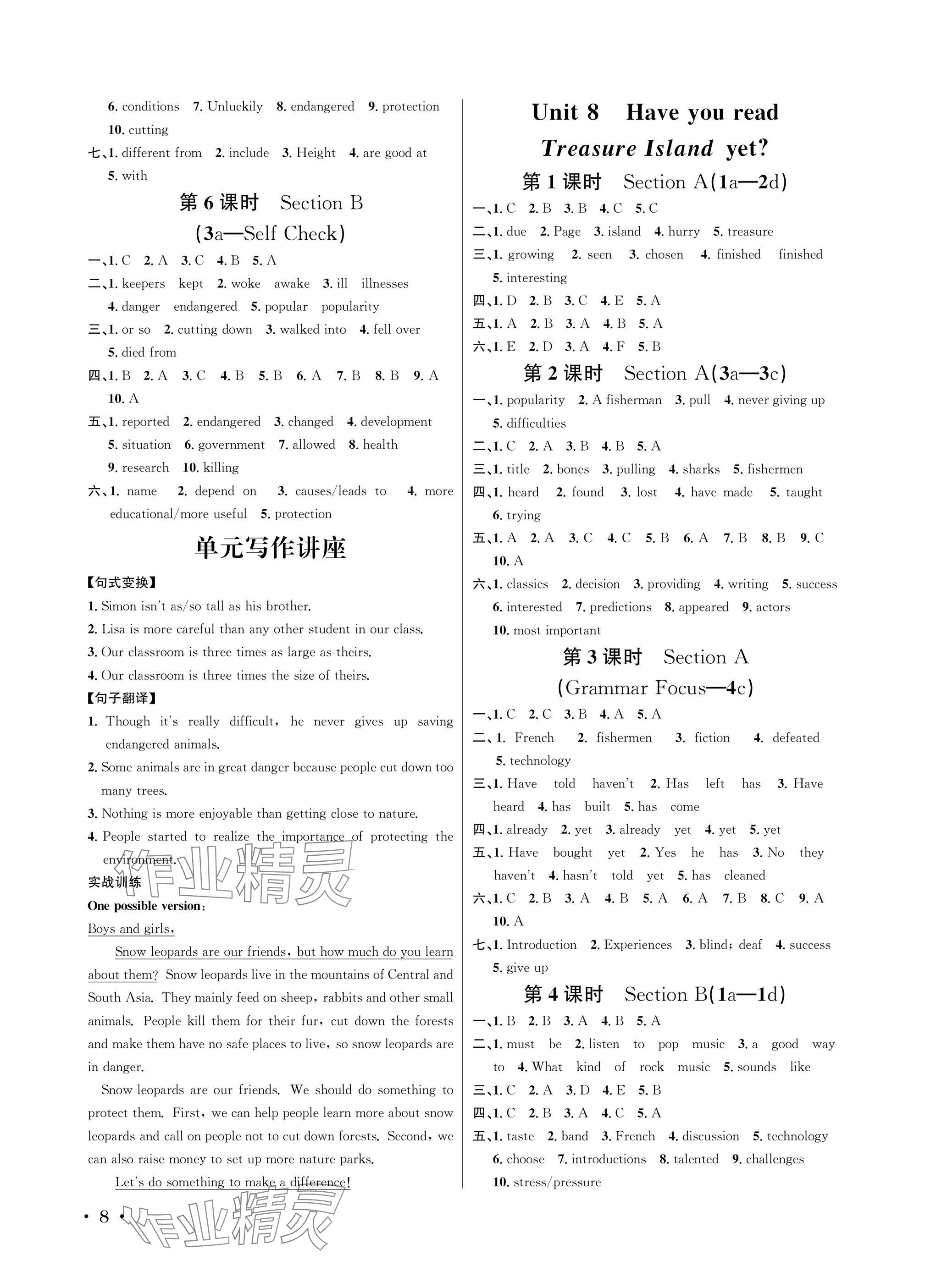 注:目前有些书本章节名称可能整理的还不是很完善,但都是按照顺序排列的,请同学们按照顺序仔细查找。练习册 2025年蓉城学霸八年级英语下册人教版 答案主要是用来给同学们做完题方便对答案用的,请勿直接抄袭。