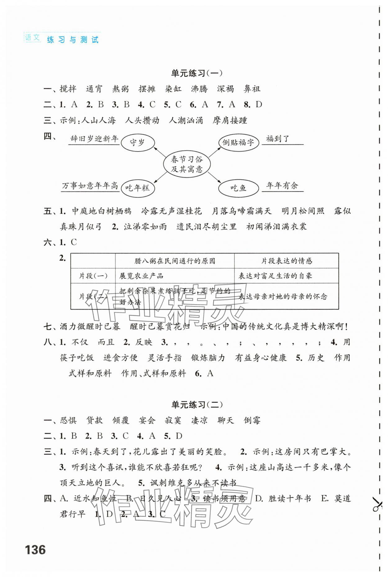 注:目前有些书本章节名称可能整理的还不是很完善,但都是按照顺序排列的,请同学们按照顺序仔细查找。练习册 2025年练习与测试六年级语文下册人教版陕西专版 答案主要是用来给同学们做完题方便对答案用的,请勿直接抄袭。