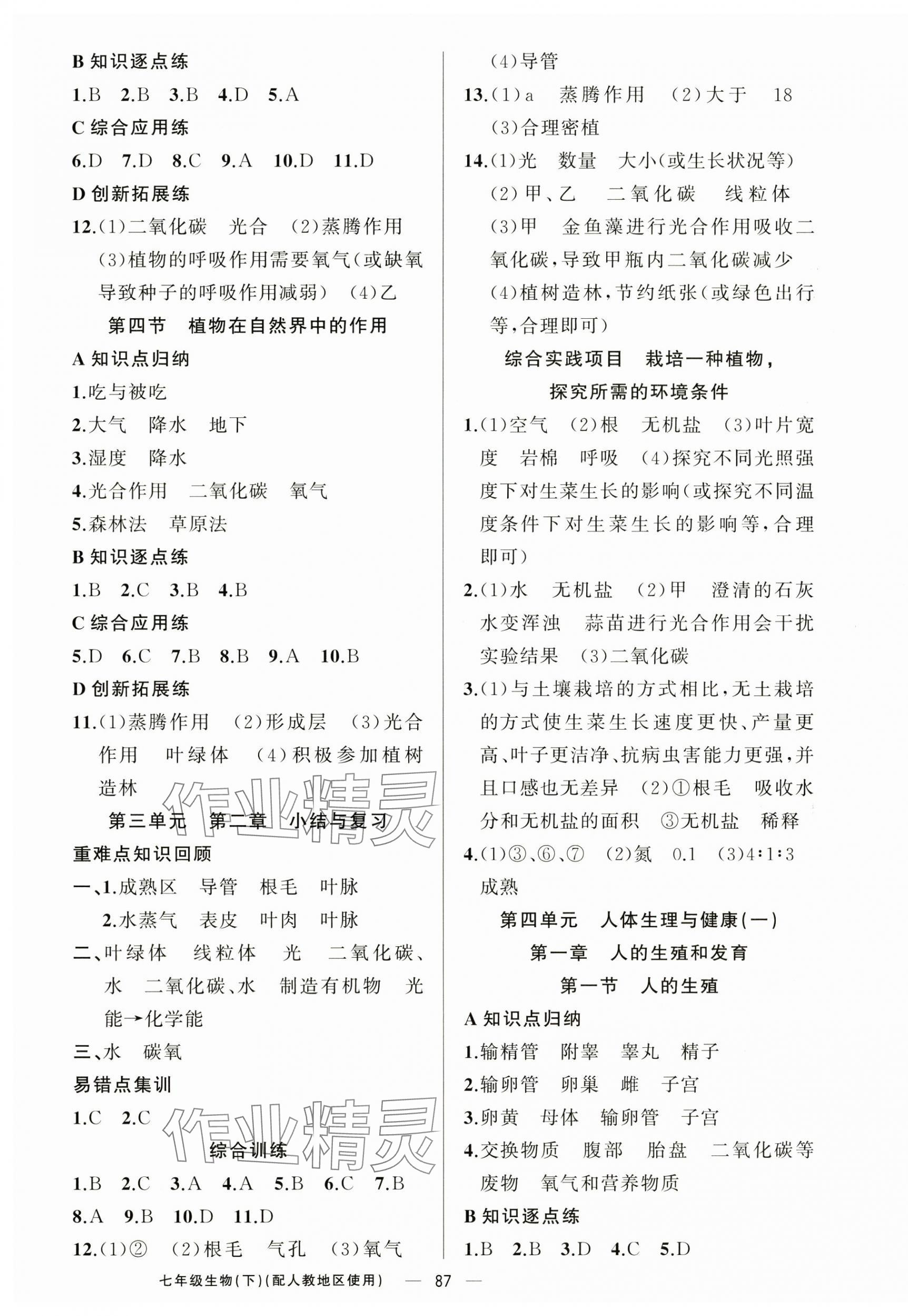 2025年黄冈金牌之路练闯考七年级生物下册人教版