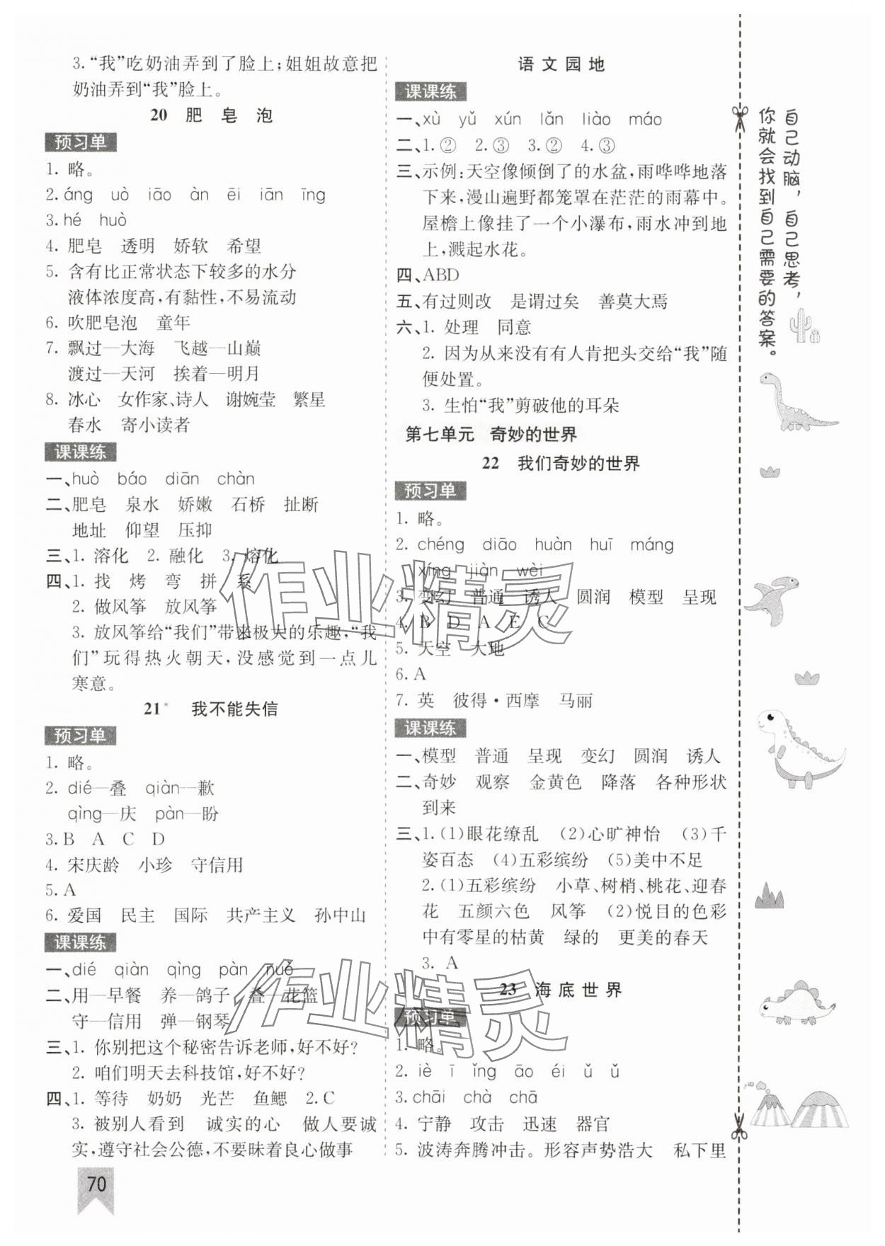 注:目前有些书本章节名称可能整理的还不是很完善,但都是按照顺序排列的,请同学们按照顺序仔细查找。练习册 2025年七彩课堂三年级语文下册人教版山东专版 答案主要是用来给同学们做完题方便对答案用的,请勿直接抄袭。