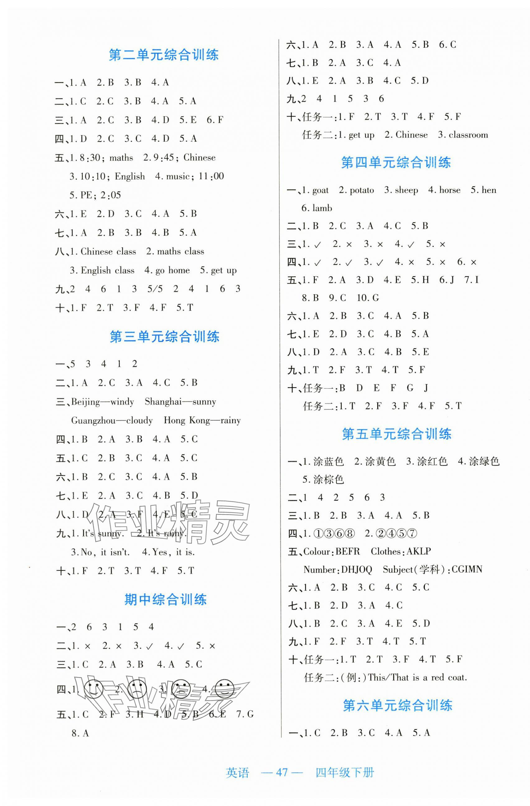 注:目前有些书本章节名称可能整理的还不是很完善,但都是按照顺序排列的,请同学们按照顺序仔细查找。练习册 2025年新课程新练习四年级英语下册人教版 答案主要是用来给同学们做完题方便对答案用的,请勿直接抄袭。