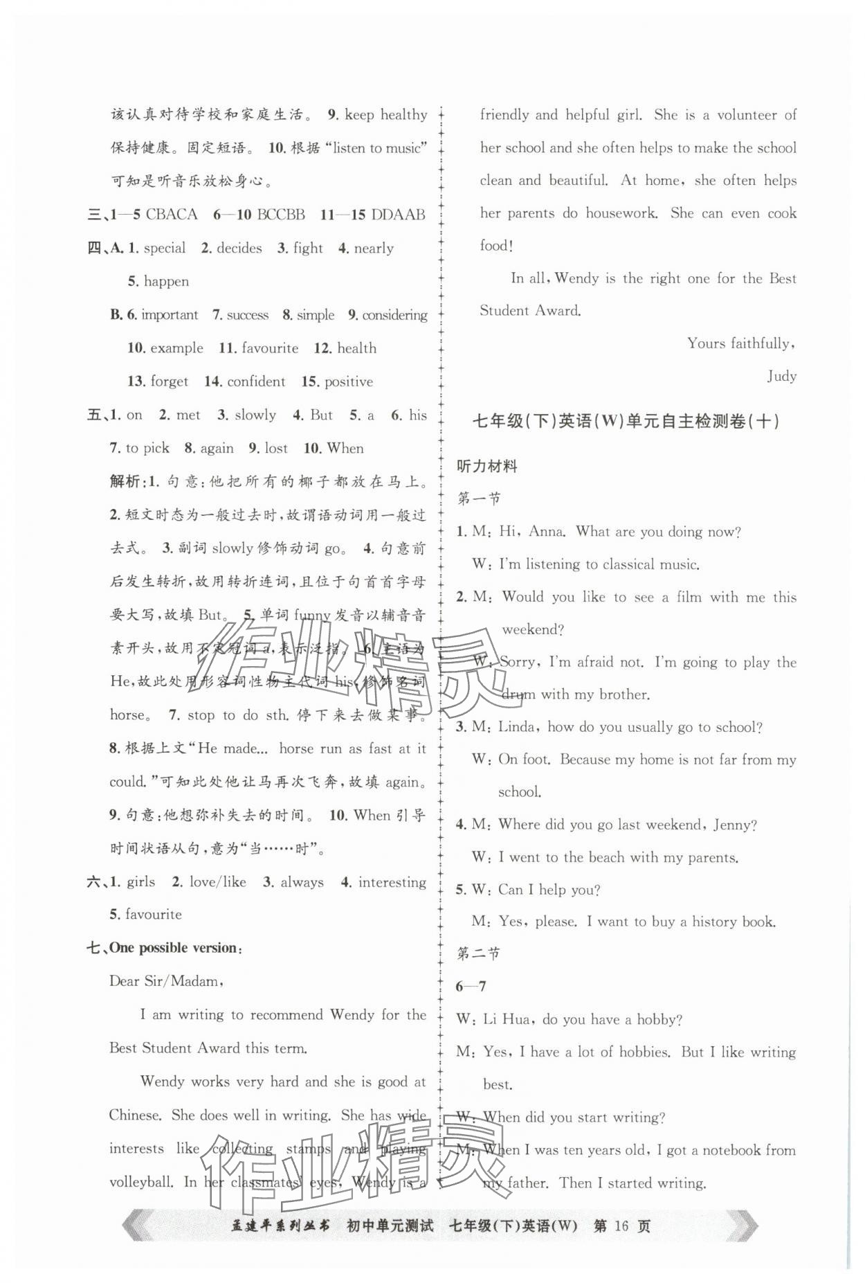 注:目前有些书本章节名称可能整理的还不是很完善,但都是按照顺序排列的,请同学们按照顺序仔细查找。练习册 2025年孟建平单元测试七年级英语下册外研版 答案主要是用来给同学们做完题方便对答案用的,请勿直接抄袭。
