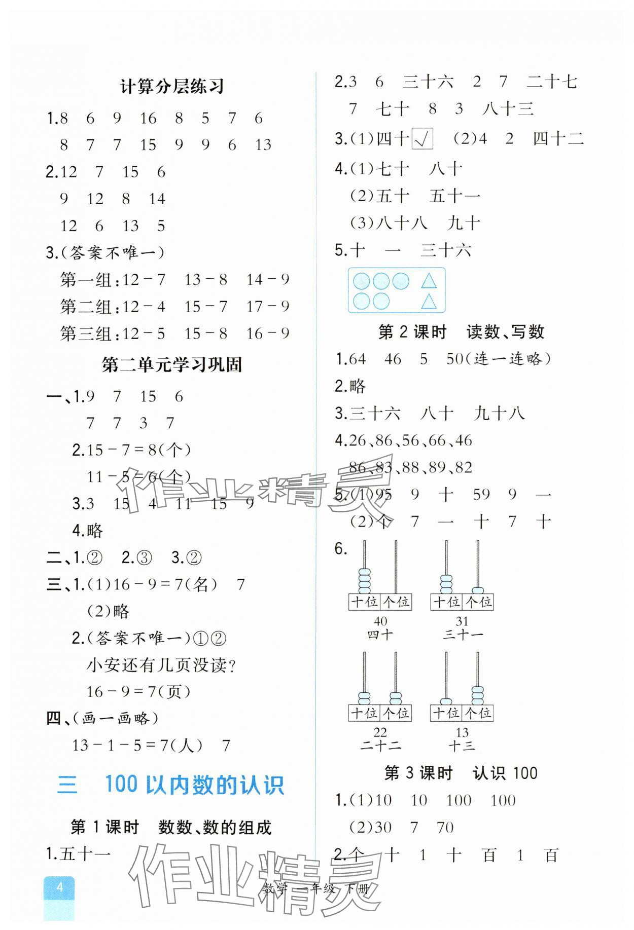 2025年人教金学典同步解析与测评一年级数学下册人教版重庆专版