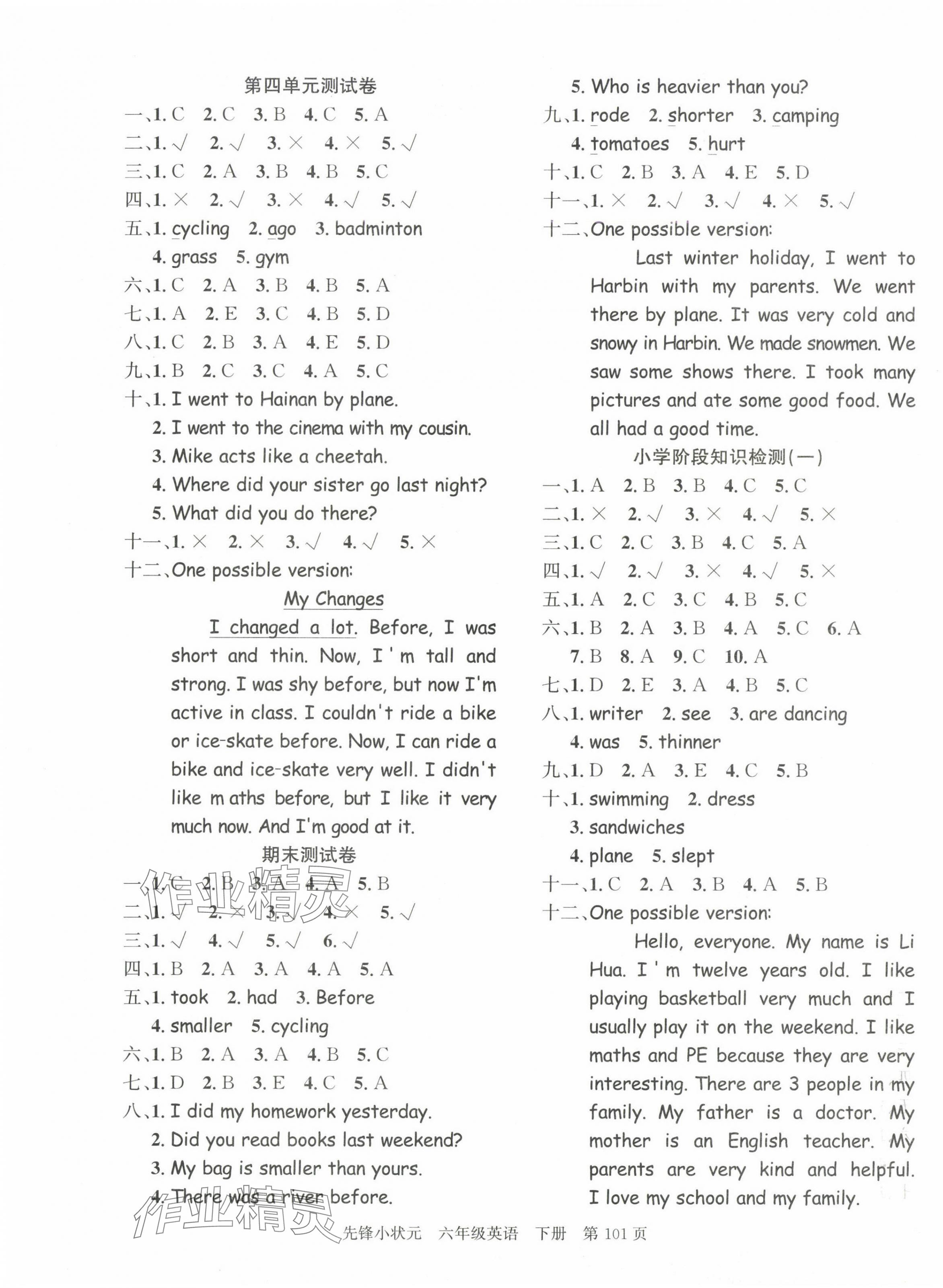 注:目前有些书本章节名称可能整理的还不是很完善,但都是按照顺序排列的,请同学们按照顺序仔细查找。练习册 2025年先锋小状元六年级英语下册人教版 答案主要是用来给同学们做完题方便对答案用的,请勿直接抄袭。