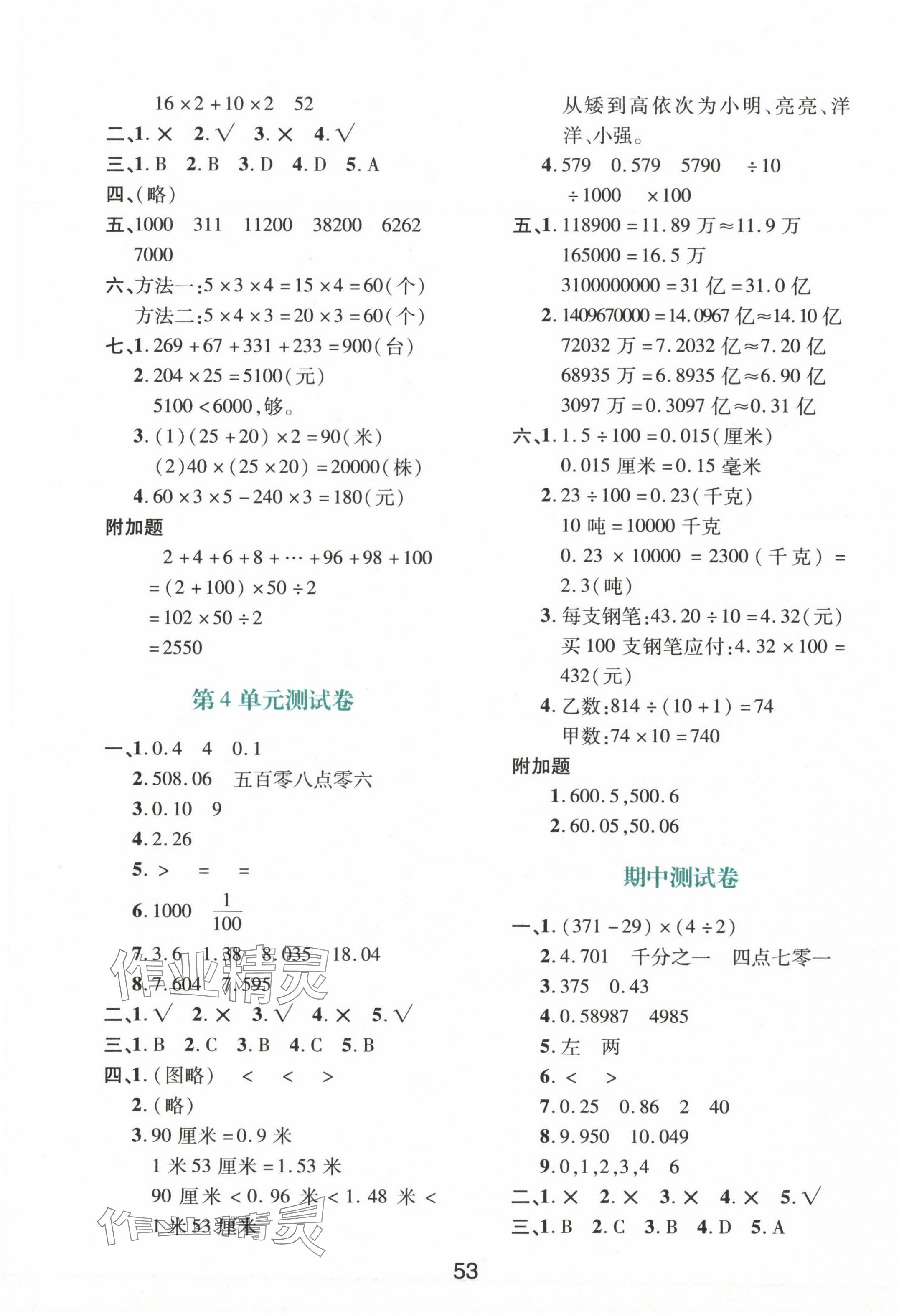 注:目前有些书本章节名称可能整理的还不是很完善,但都是按照顺序排列的,请同学们按照顺序仔细查找。练习册 2025年新课程学习与评价四年级数学下册人教版 答案主要是用来给同学们做完题方便对答案用的,请勿直接抄袭。