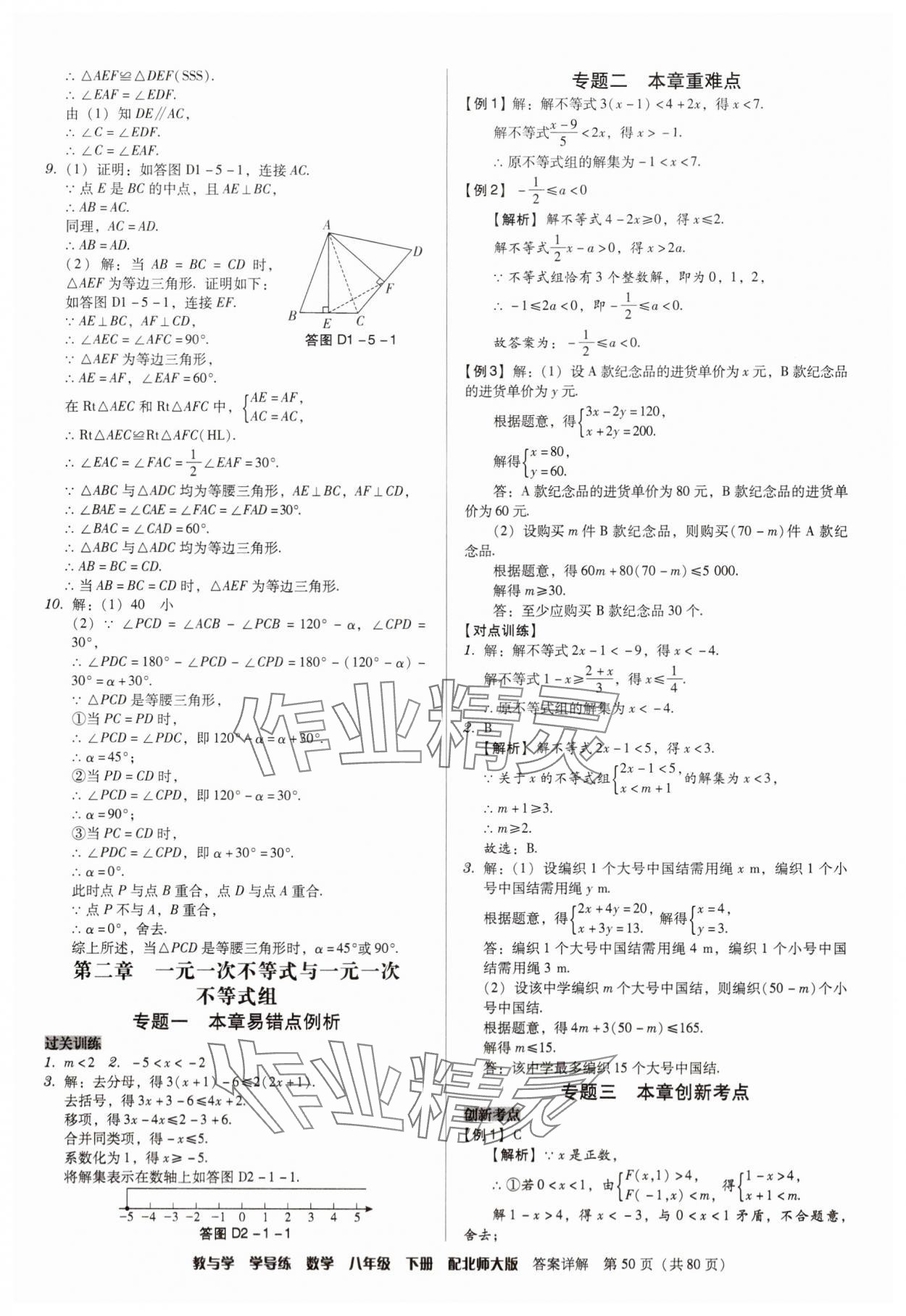 注:目前有些书本章节名称可能整理的还不是很完善,但都是按照顺序排列的,请同学们按照顺序仔细查找。练习册 2025年教与学学导练八年级数学下册北师大版 答案主要是用来给同学们做完题方便对答案用的,请勿直接抄袭。