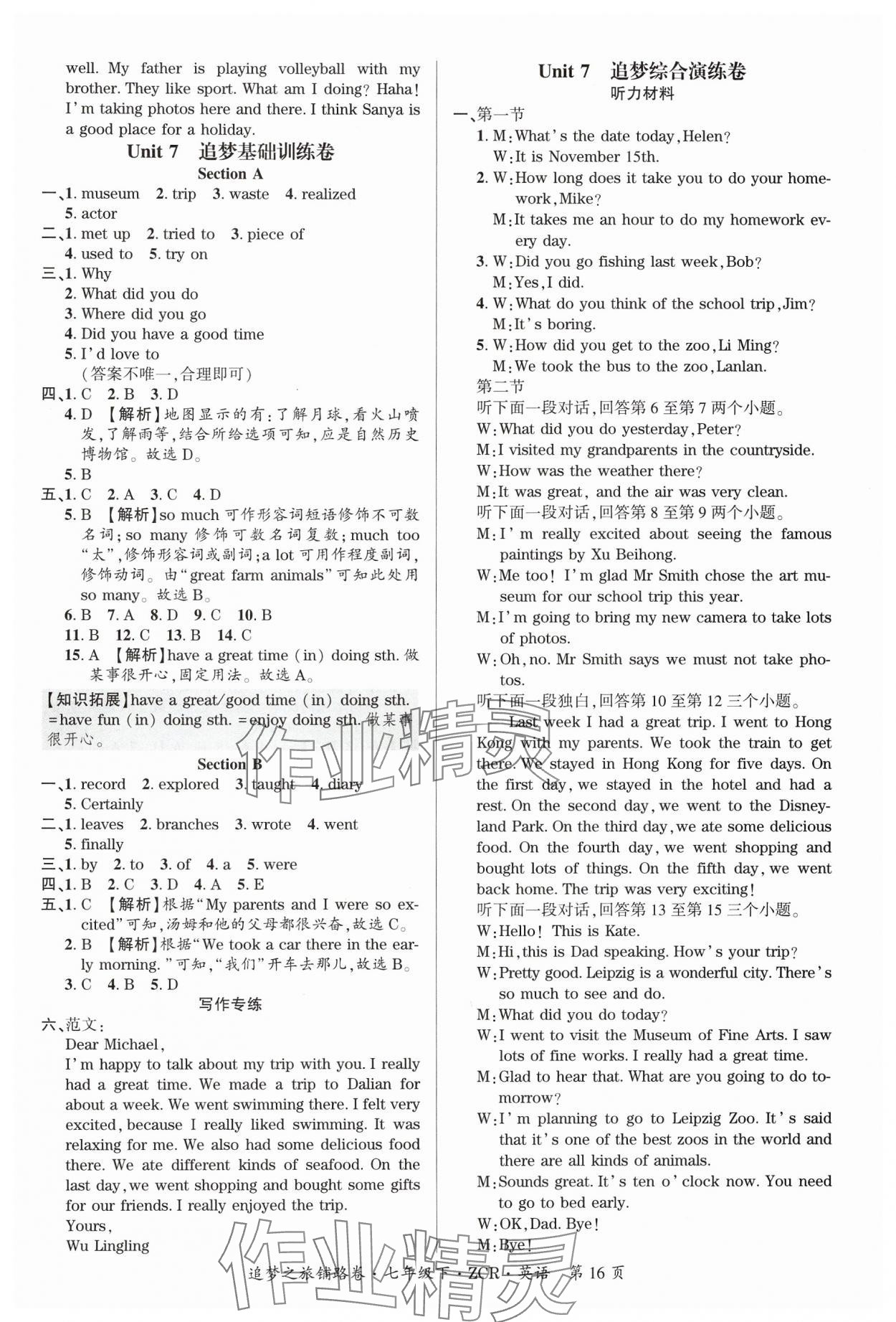 注:目前有些书本章节名称可能整理的还不是很完善,但都是按照顺序排列的,请同学们按照顺序仔细查找。练习册 2025年追梦之旅铺路卷七年级英语下册人教版河南专版 答案主要是用来给同学们做完题方便对答案用的,请勿直接抄袭。