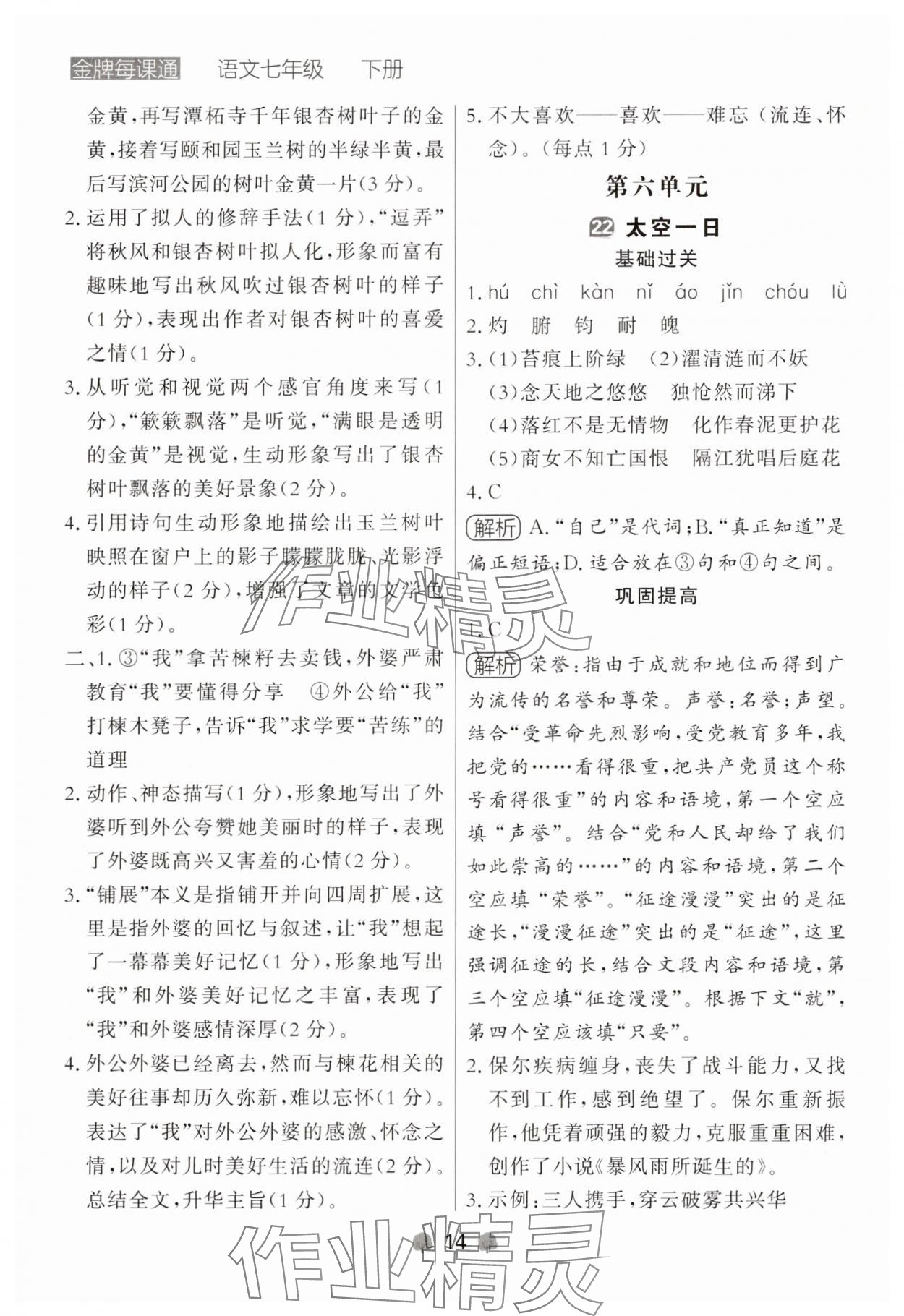 2025年点石成金金牌每课通七年级语文下册人教版辽宁专版