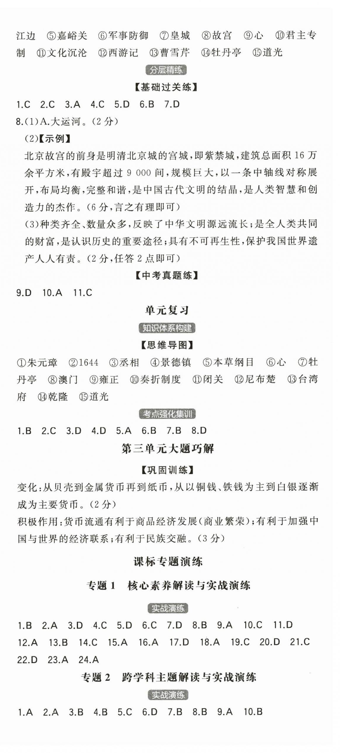 注:目前有些书本章节名称可能整理的还不是很完善,但都是按照顺序排列的,请同学们按照顺序仔细查找。练习册 2025年一本同步训练初中历史七年级下册人教版安徽专版 答案主要是用来给同学们做完题方便对答案用的,请勿直接抄袭。
