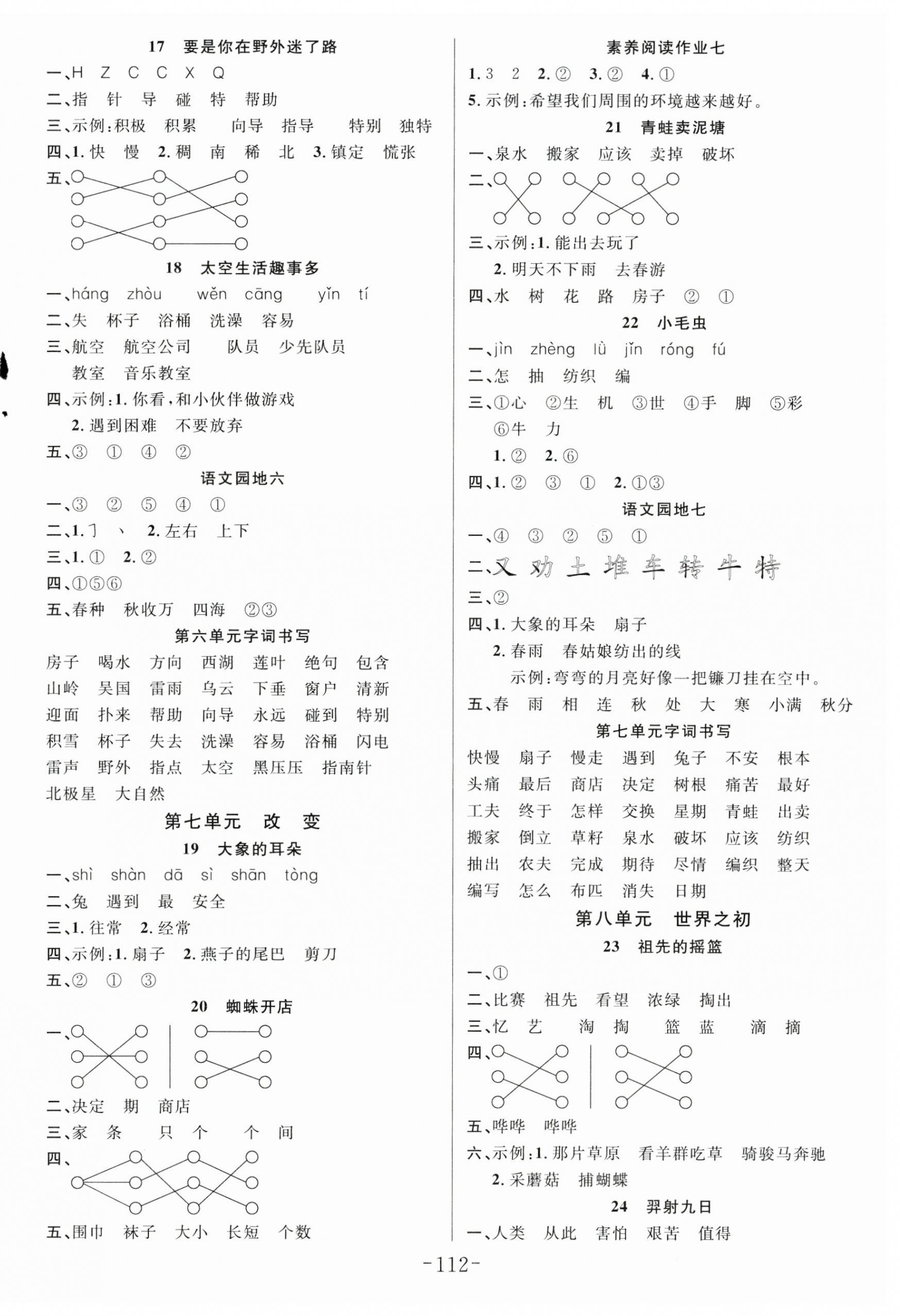 注:目前有些书本章节名称可能整理的还不是很完善,但都是按照顺序排列的,请同学们按照顺序仔细查找。练习册 2025年小状元随堂作业二年级语文下册人教版 答案主要是用来给同学们做完题方便对答案用的,请勿直接抄袭。