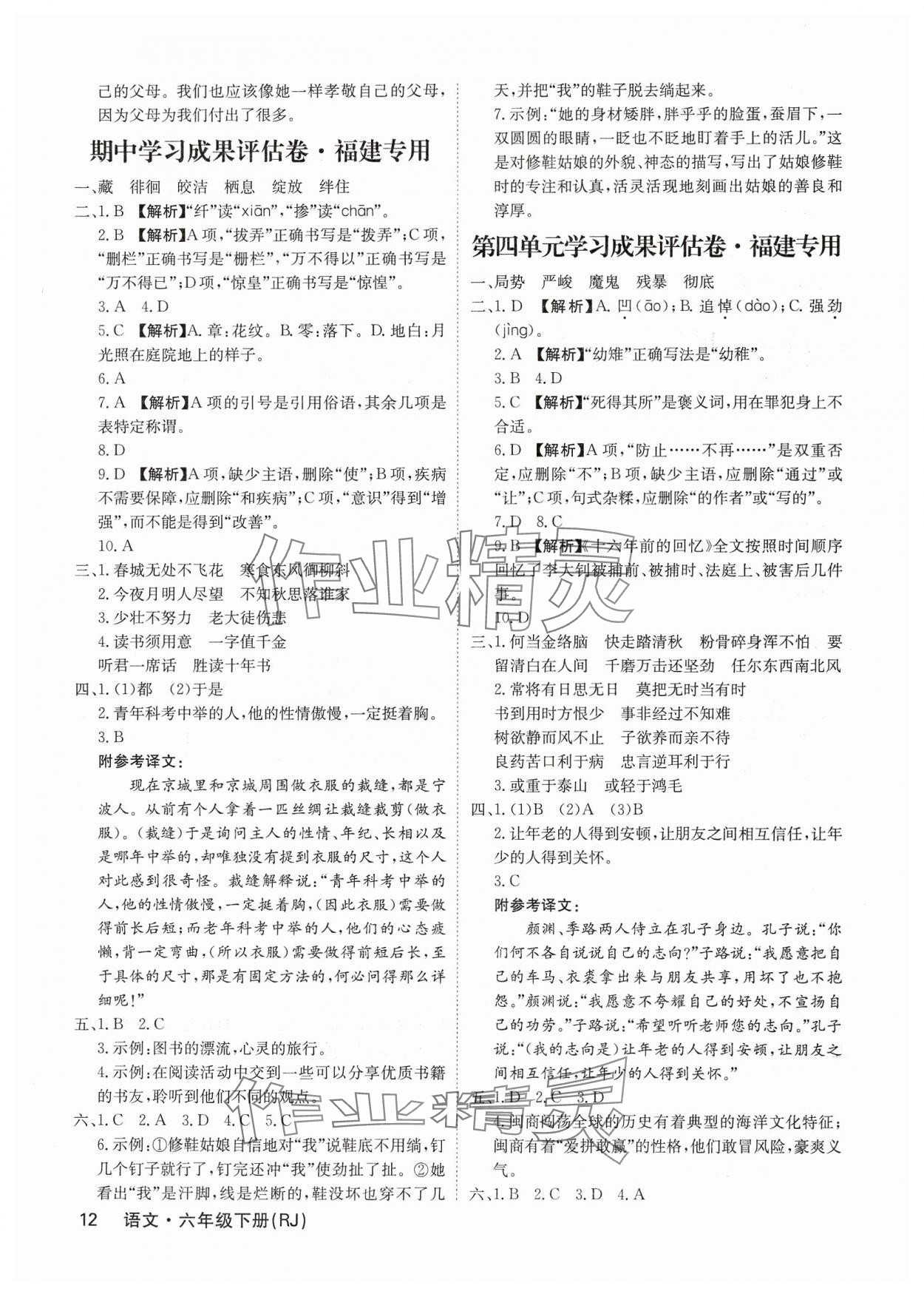 注:目前有些书本章节名称可能整理的还不是很完善,但都是按照顺序排列的,请同学们按照顺序仔细查找。练习册 2025年课堂点睛六年级语文下册人教版福建专版 答案主要是用来给同学们做完题方便对答案用的,请勿直接抄袭。