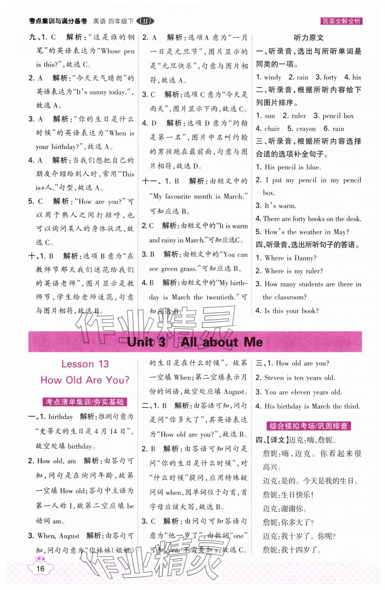 注:目前有些书本章节名称可能整理的还不是很完善,但都是按照顺序排列的,请同学们按照顺序仔细查找。练习册 2025年考点集训与满分备考四年级英语下册冀教版 答案主要是用来给同学们做完题方便对答案用的,请勿直接抄袭。