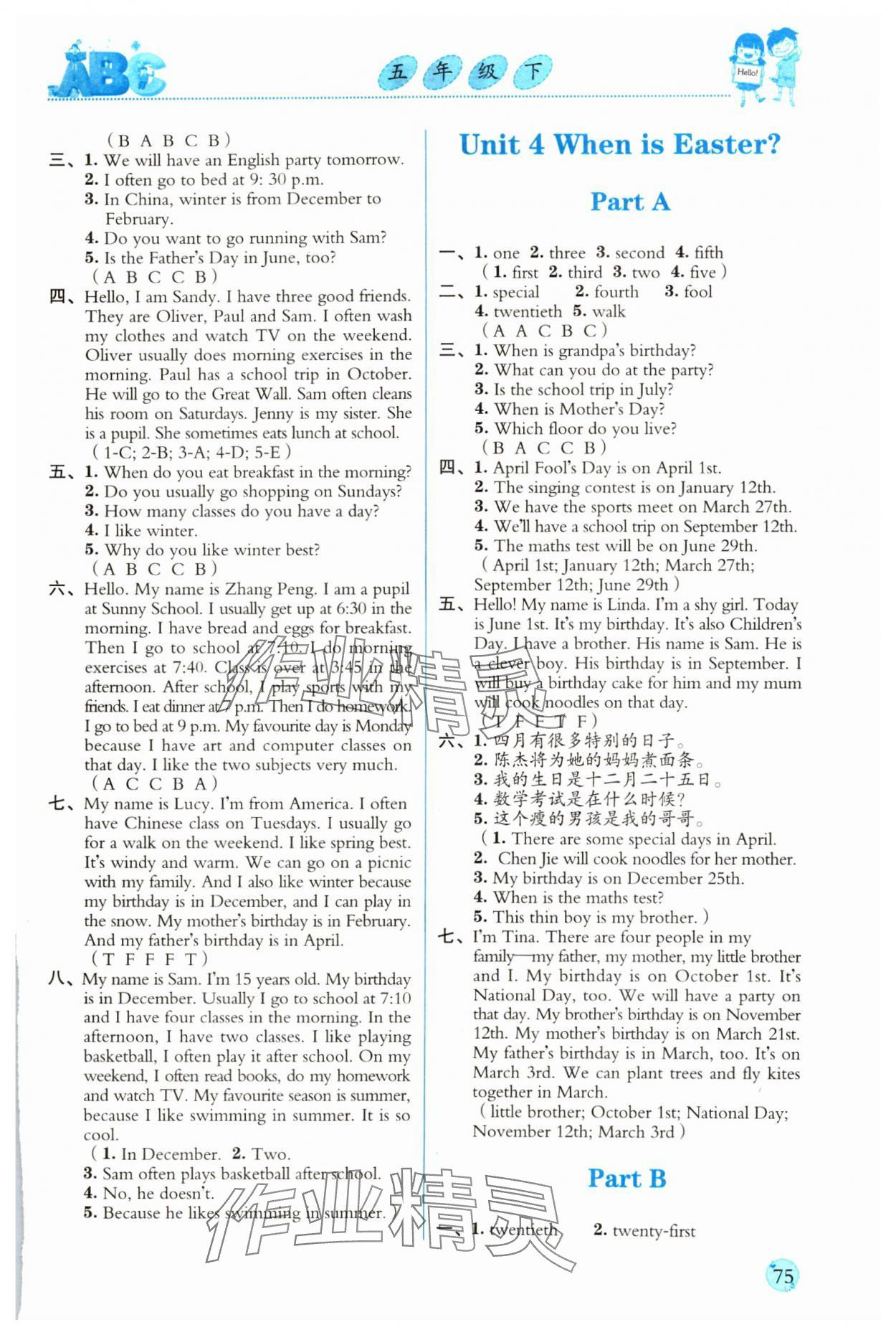 注:目前有些书本章节名称可能整理的还不是很完善,但都是按照顺序排列的,请同学们按照顺序仔细查找。练习册 2025年飞越听力英语训练与测试五年级下册人教版 答案主要是用来给同学们做完题方便对答案用的,请勿直接抄袭。