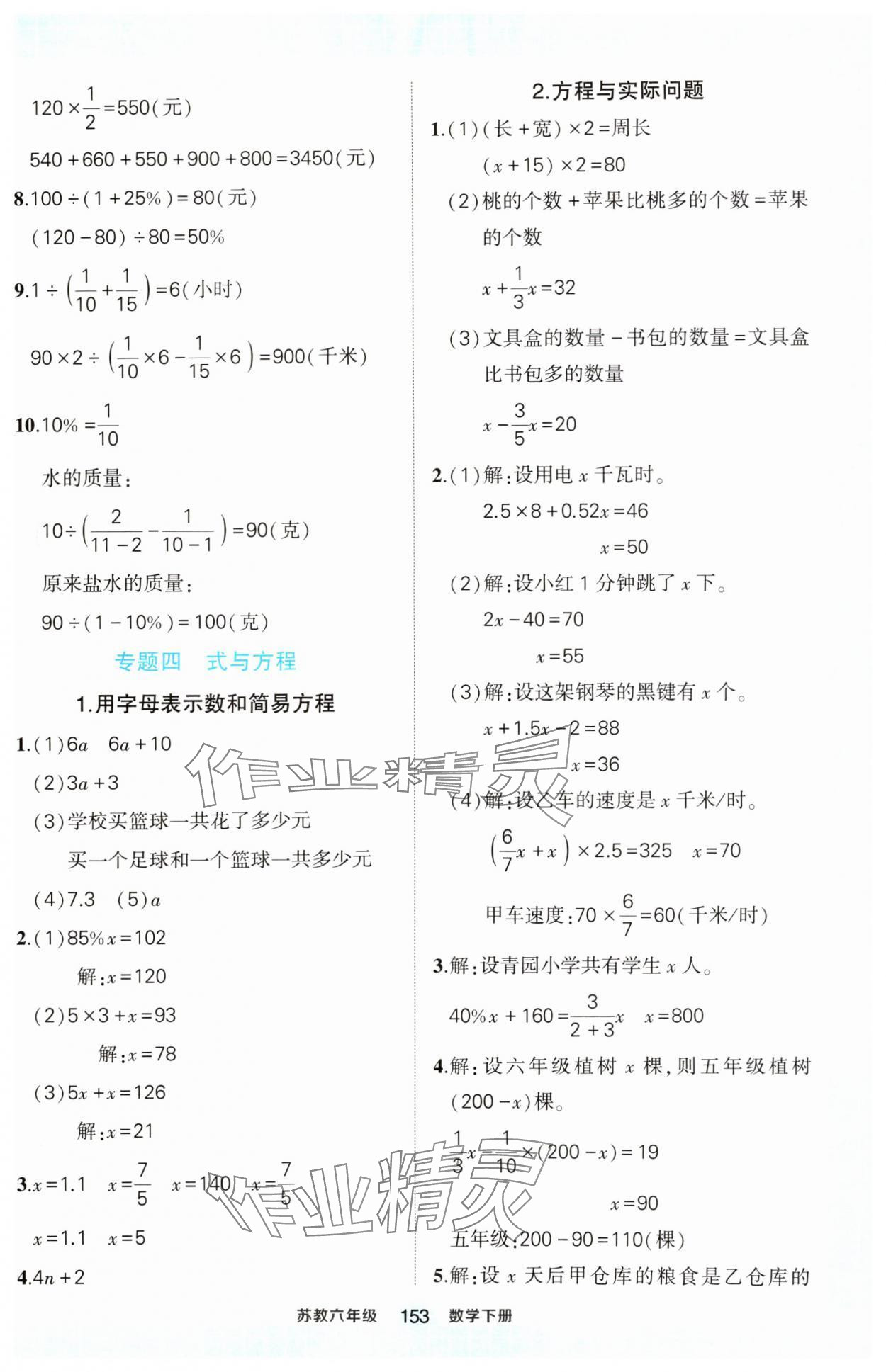 注:目前有些书本章节名称可能整理的还不是很完善,但都是按照顺序排列的,请同学们按照顺序仔细查找。练习册 2025年黄冈状元成才路状元作业本六年级数学下册苏教版 答案主要是用来给同学们做完题方便对答案用的,请勿直接抄袭。