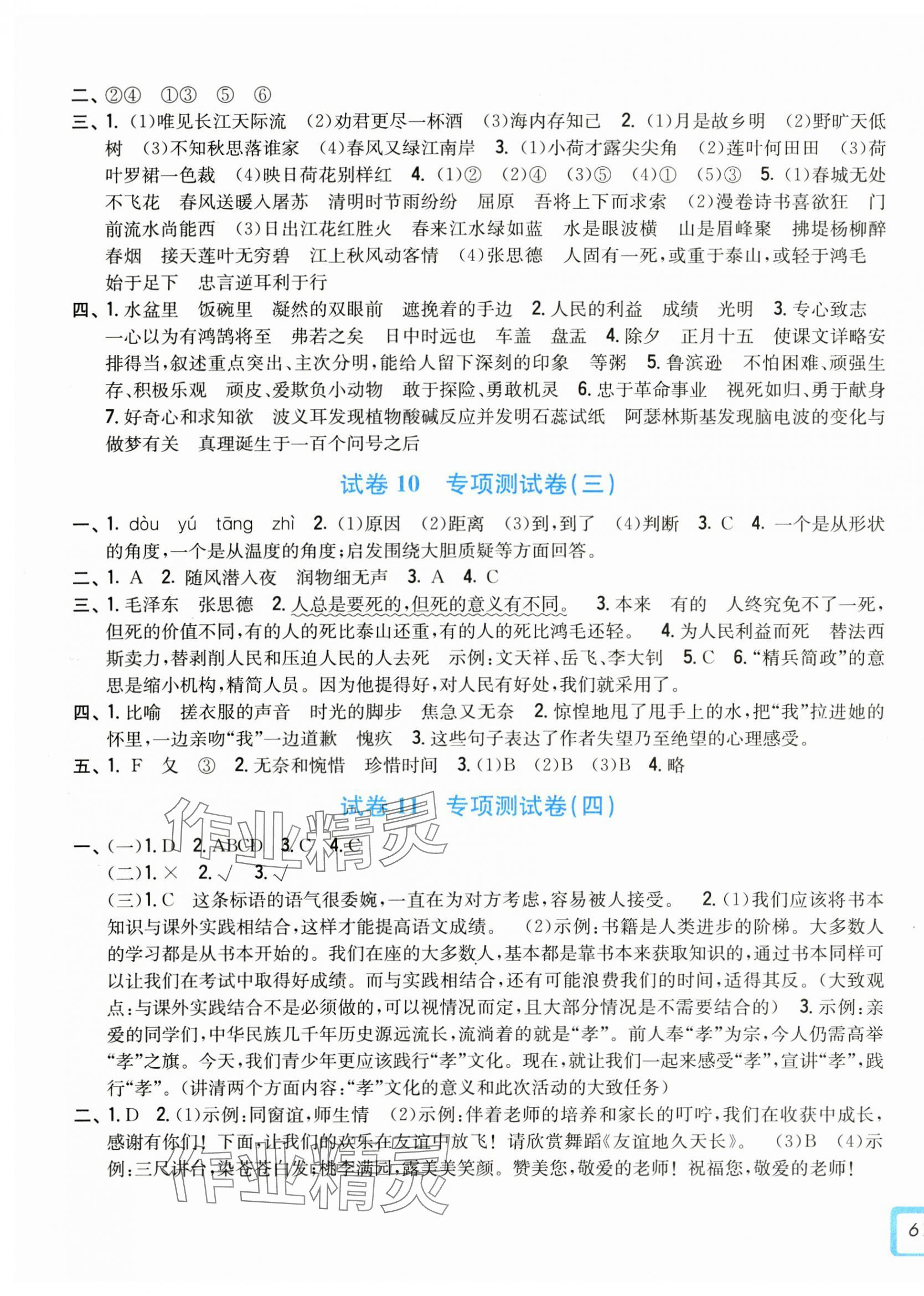 注:目前有些书本章节名称可能整理的还不是很完善,但都是按照顺序排列的,请同学们按照顺序仔细查找。练习册 2025年学力测评小学生单元测试卷六年级语文下册人教版 答案主要是用来给同学们做完题方便对答案用的,请勿直接抄袭。