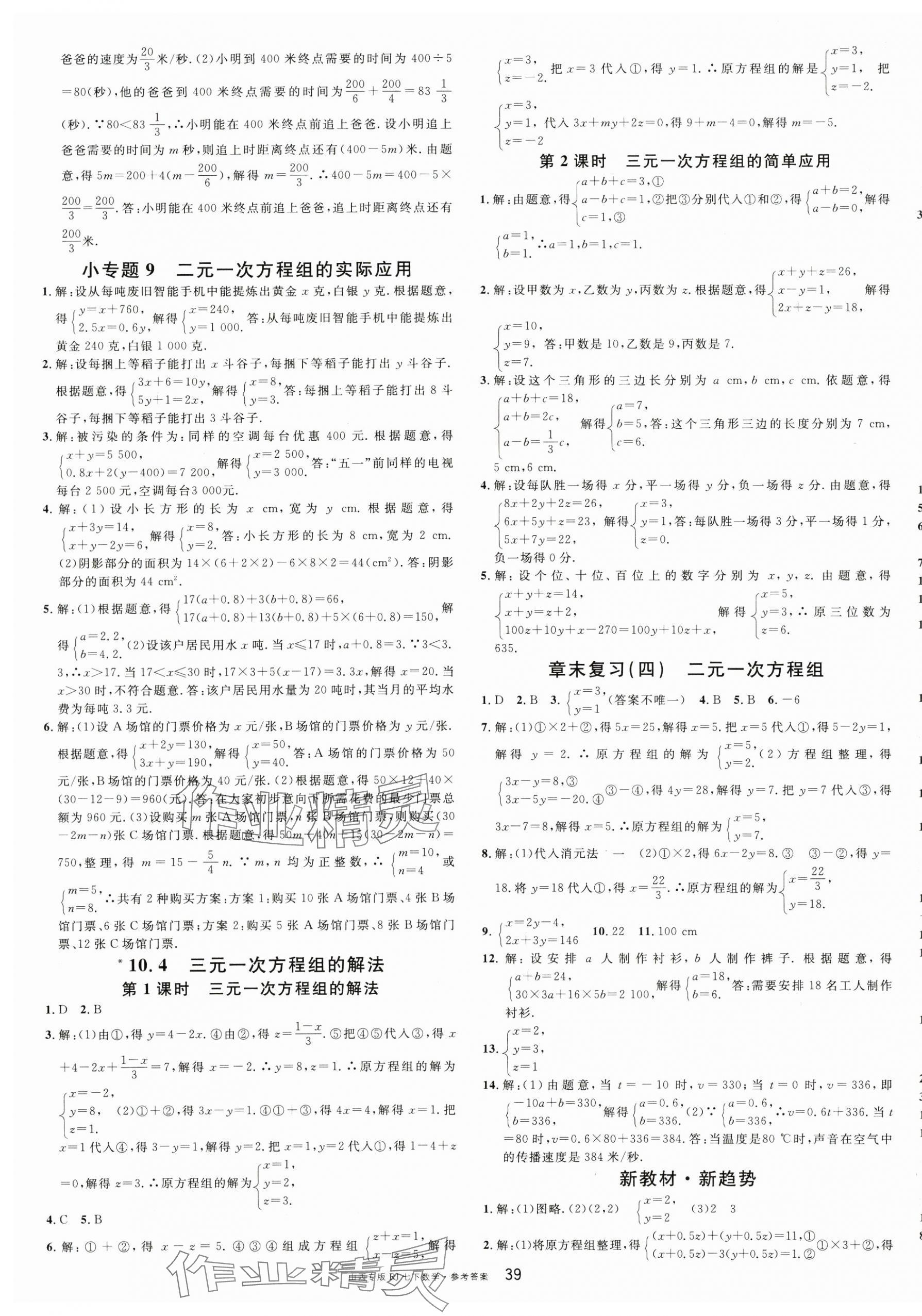 注:目前有些书本章节名称可能整理的还不是很完善,但都是按照顺序排列的,请同学们按照顺序仔细查找。练习册 2025年名校课堂七年级数学下册人教版山西专版 答案主要是用来给同学们做完题方便对答案用的,请勿直接抄袭。