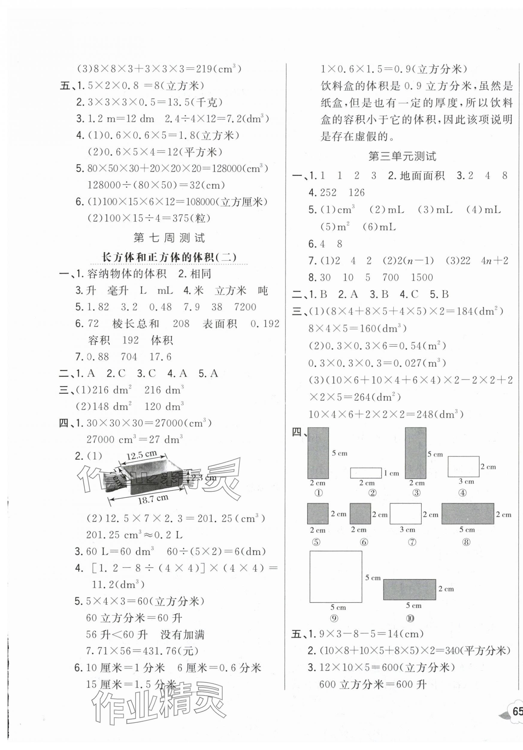注:目前有些书本章节名称可能整理的还不是很完善,但都是按照顺序排列的,请同学们按照顺序仔细查找。练习册 2025年悦然好学生周周测五年级数学下册人教版 答案主要是用来给同学们做完题方便对答案用的,请勿直接抄袭。