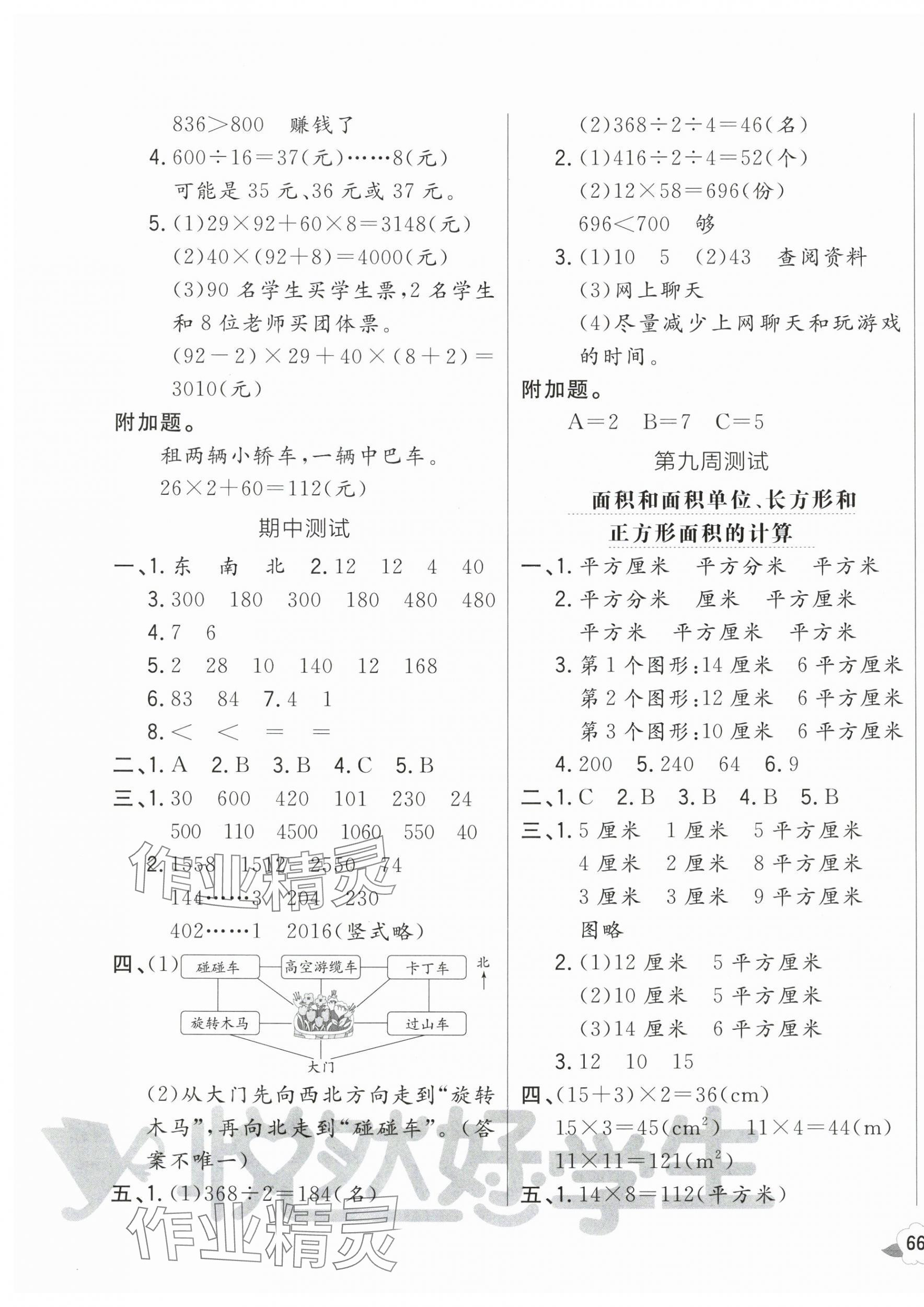注:目前有些书本章节名称可能整理的还不是很完善,但都是按照顺序排列的,请同学们按照顺序仔细查找。练习册 2025年悦然好学生周周测三年级数学下册人教版 答案主要是用来给同学们做完题方便对答案用的,请勿直接抄袭。