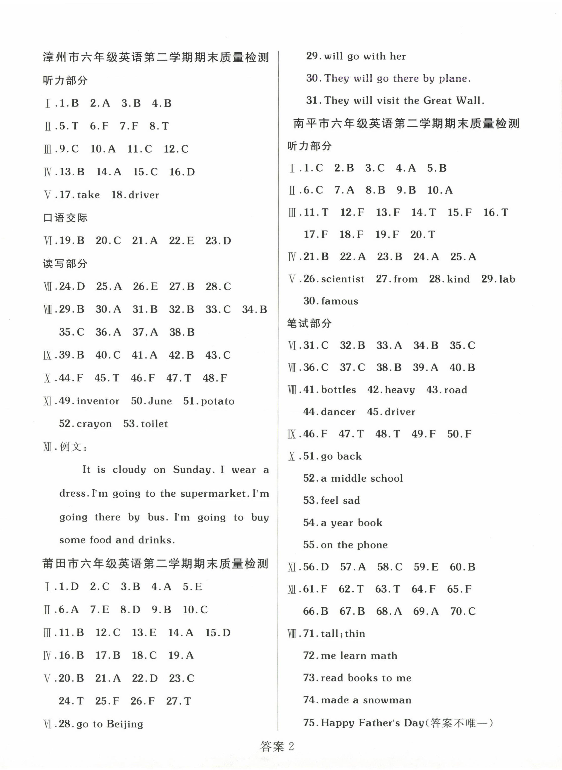 注:目前有些书本章节名称可能整理的还不是很完善,但都是按照顺序排列的,请同学们按照顺序仔细查找。练习册 2025年同行课课100分过关作业六年级英语下册闽教版 答案主要是用来给同学们做完题方便对答案用的,请勿直接抄袭。