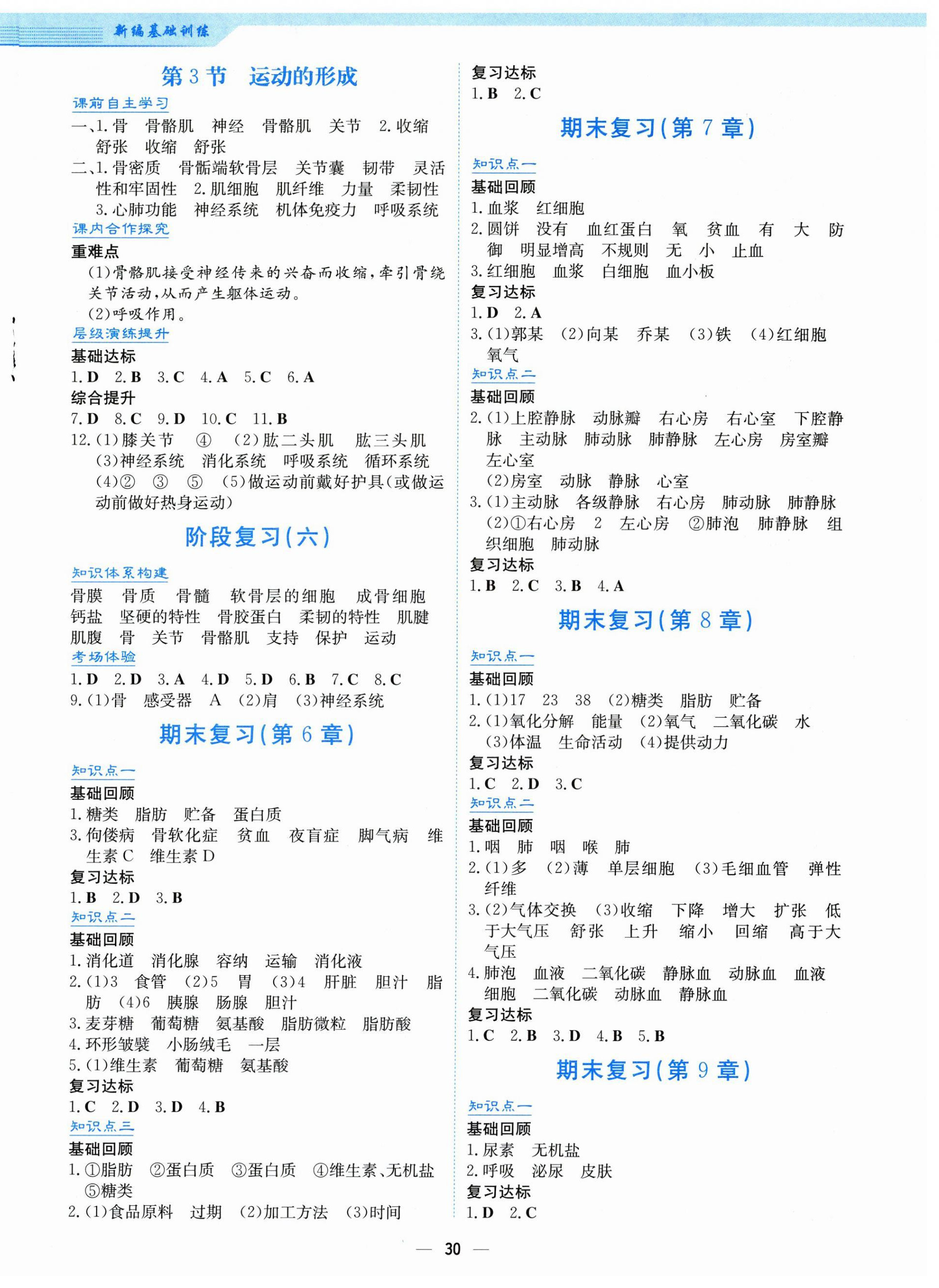 注:目前有些书本章节名称可能整理的还不是很完善,但都是按照顺序排列的,请同学们按照顺序仔细查找。练习册 2025年新编基础训练七年级生物下册北师大版 答案主要是用来给同学们做完题方便对答案用的,请勿直接抄袭。