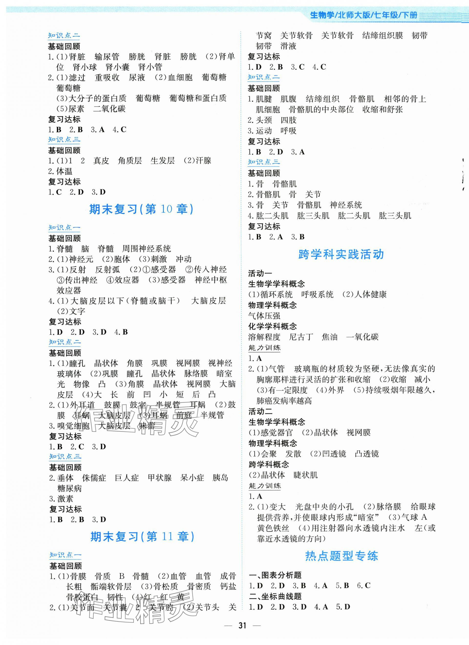 注:目前有些书本章节名称可能整理的还不是很完善,但都是按照顺序排列的,请同学们按照顺序仔细查找。练习册 2025年新编基础训练七年级生物下册北师大版 答案主要是用来给同学们做完题方便对答案用的,请勿直接抄袭。