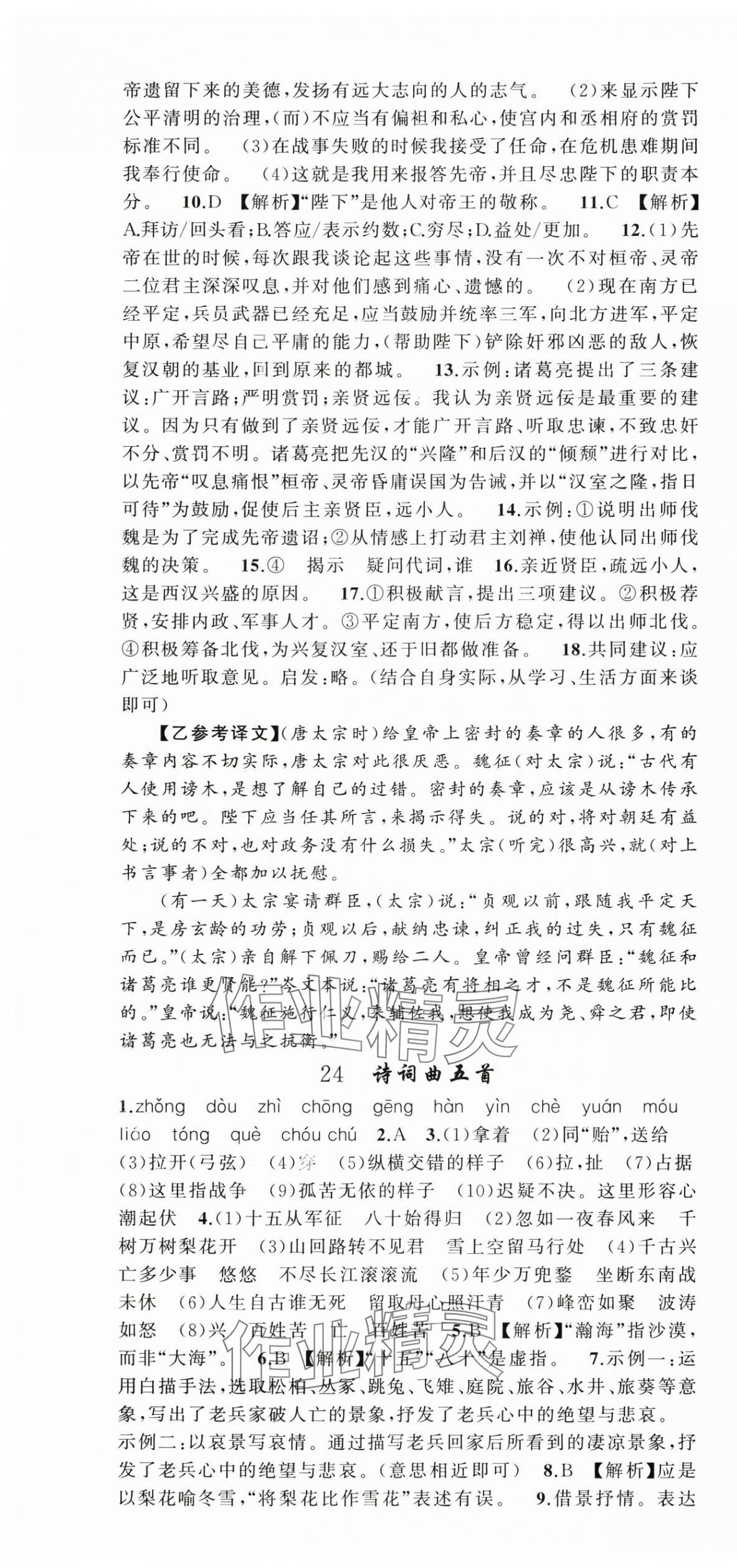 注:目前有些书本章节名称可能整理的还不是很完善,但都是按照顺序排列的,请同学们按照顺序仔细查找。练习册 2025年同步训练100分闯关九年级语文下册人教版河南专版 答案主要是用来给同学们做完题方便对答案用的,请勿直接抄袭。