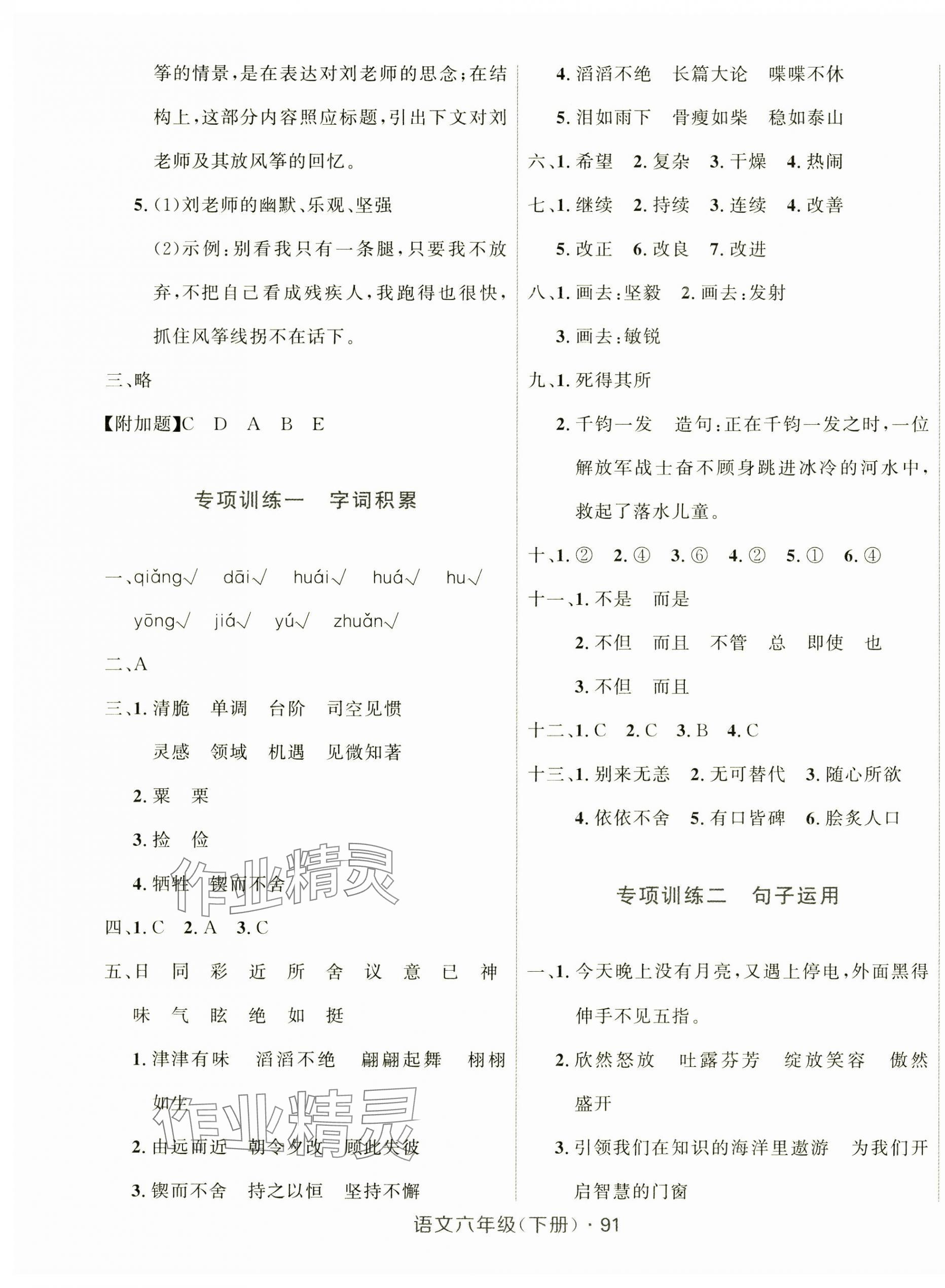 注:目前有些书本章节名称可能整理的还不是很完善,但都是按照顺序排列的,请同学们按照顺序仔细查找。练习册 2025年优化测试卷三秦出版社六年级语文下册人教版 答案主要是用来给同学们做完题方便对答案用的,请勿直接抄袭。