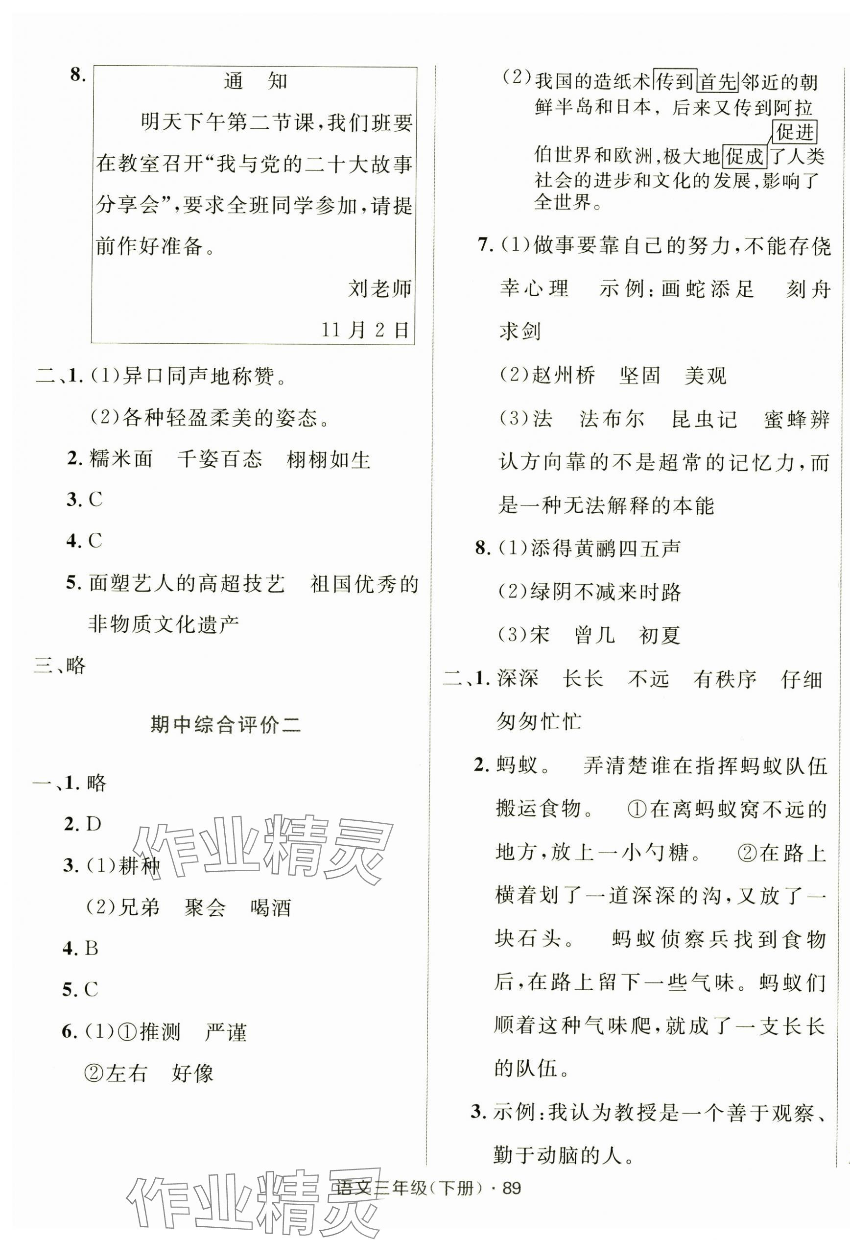 注:目前有些书本章节名称可能整理的还不是很完善,但都是按照顺序排列的,请同学们按照顺序仔细查找。练习册 2025年优化测试卷三秦出版社三年级语文下册人教版 答案主要是用来给同学们做完题方便对答案用的,请勿直接抄袭。
