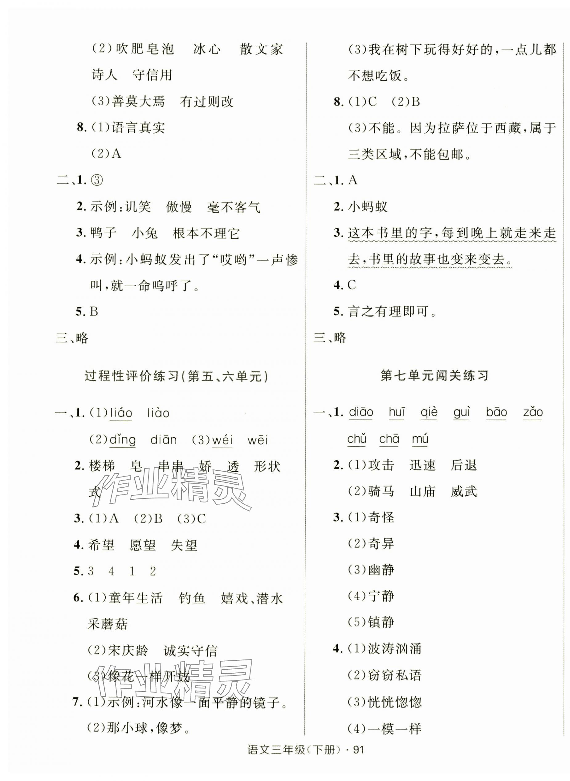 注:目前有些书本章节名称可能整理的还不是很完善,但都是按照顺序排列的,请同学们按照顺序仔细查找。练习册 2025年优化测试卷三秦出版社三年级语文下册人教版 答案主要是用来给同学们做完题方便对答案用的,请勿直接抄袭。