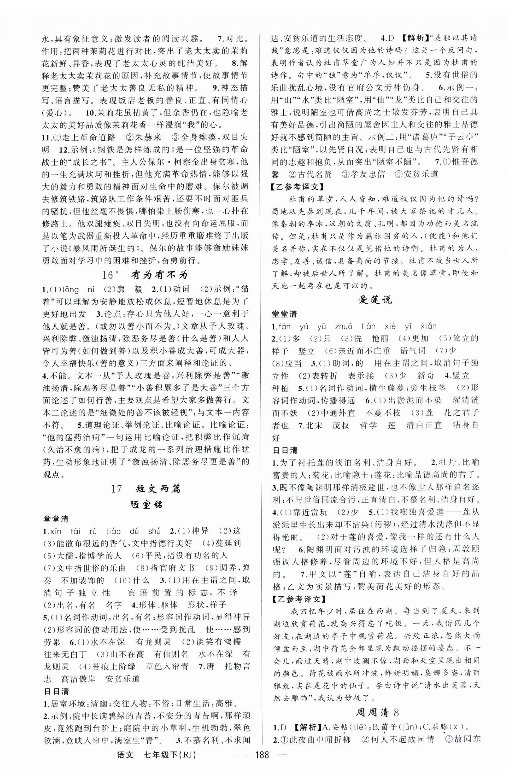 注:目前有些书本章节名称可能整理的还不是很完善,但都是按照顺序排列的,请同学们按照顺序仔细查找。练习册 2025年四清导航七年级语文下册人教版河南专版 答案主要是用来给同学们做完题方便对答案用的,请勿直接抄袭。