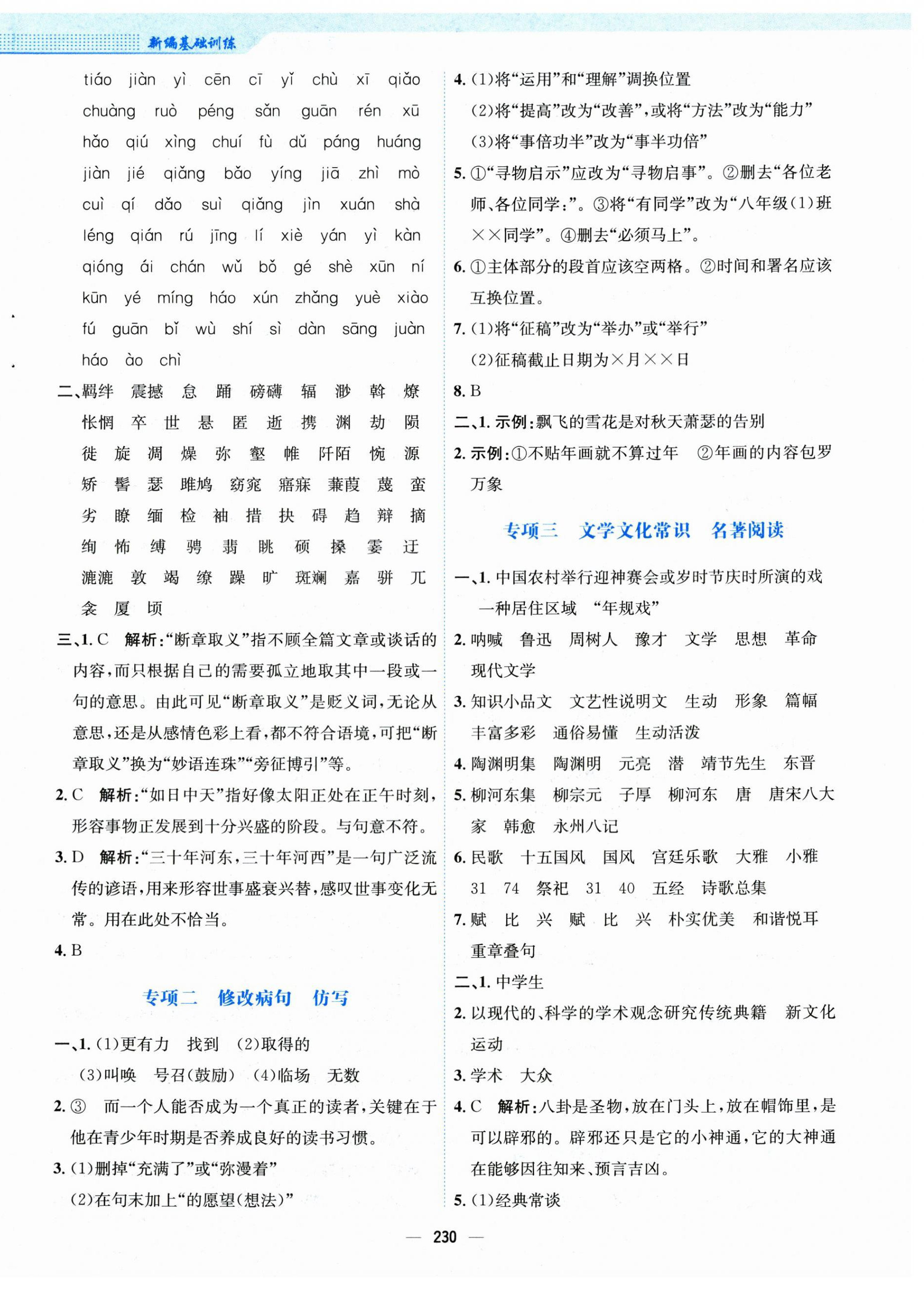注:目前有些书本章节名称可能整理的还不是很完善,但都是按照顺序排列的,请同学们按照顺序仔细查找。练习册 2025年新编基础训练八年级语文下册人教版 答案主要是用来给同学们做完题方便对答案用的,请勿直接抄袭。