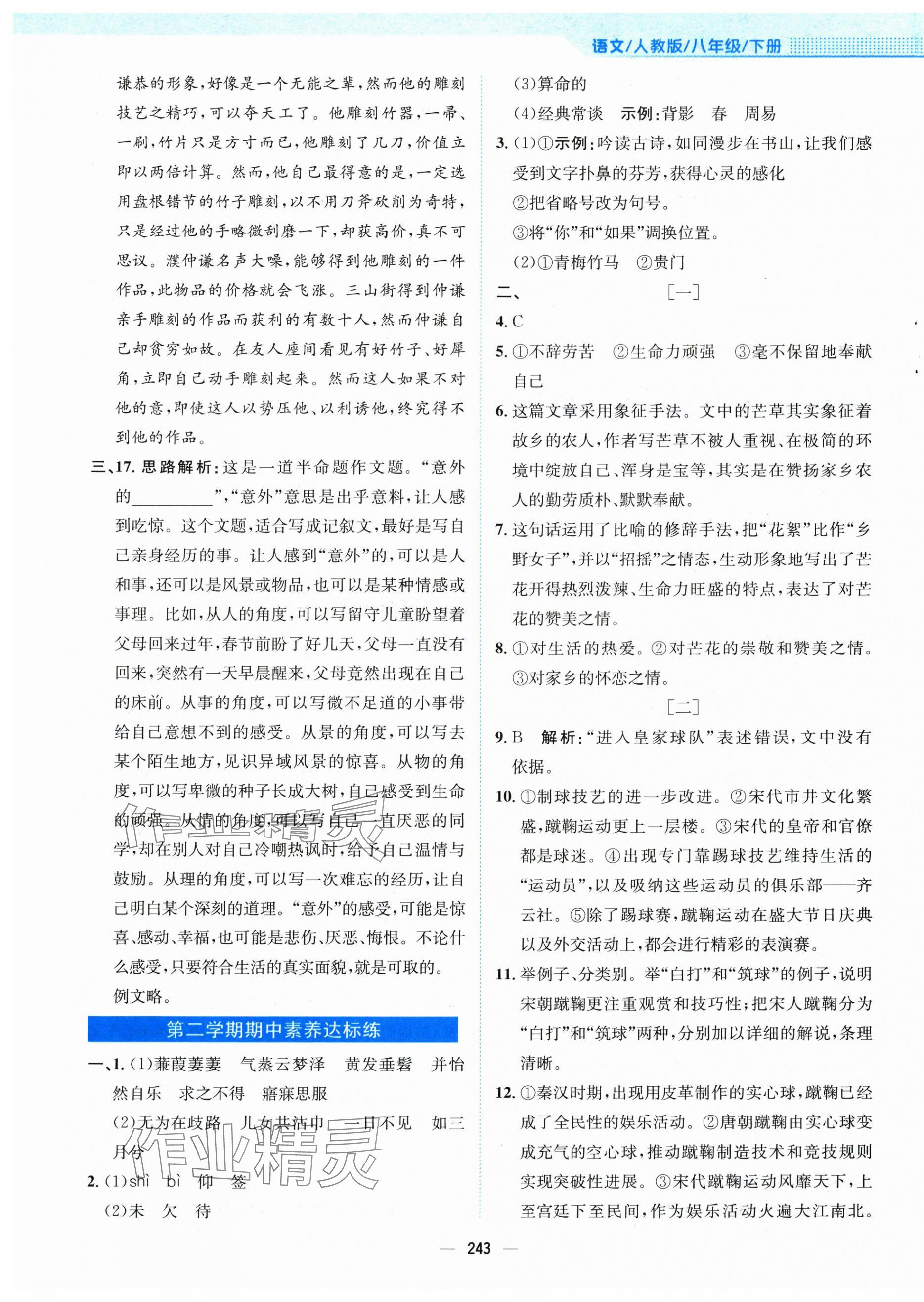 注:目前有些书本章节名称可能整理的还不是很完善,但都是按照顺序排列的,请同学们按照顺序仔细查找。练习册 2025年新编基础训练八年级语文下册人教版 答案主要是用来给同学们做完题方便对答案用的,请勿直接抄袭。