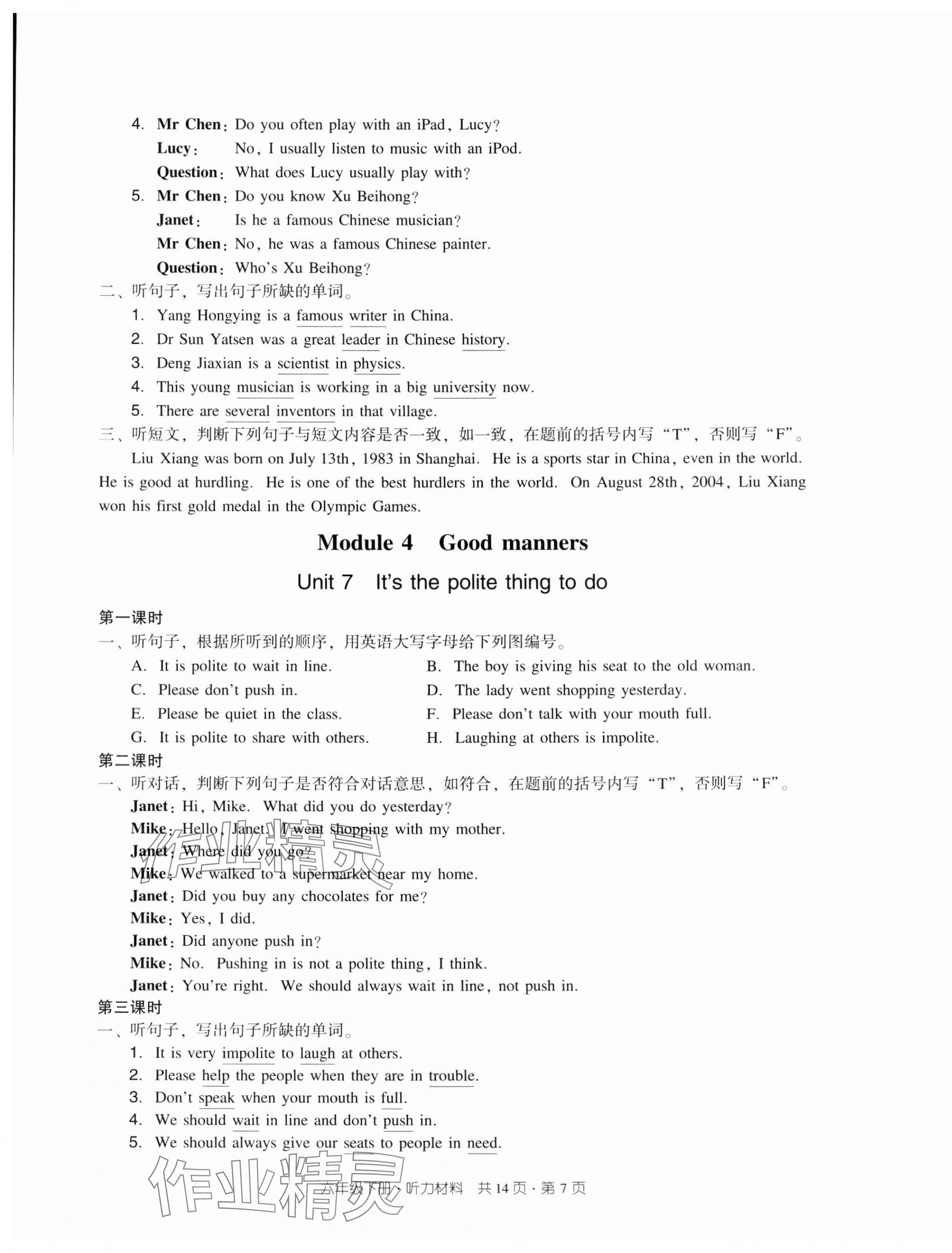 注:目前有些书本章节名称可能整理的还不是很完善,但都是按照顺序排列的,请同学们按照顺序仔细查找。练习册 2025年双基同步导学导练六年级英语下册教科版广州专版 答案主要是用来给同学们做完题方便对答案用的,请勿直接抄袭。