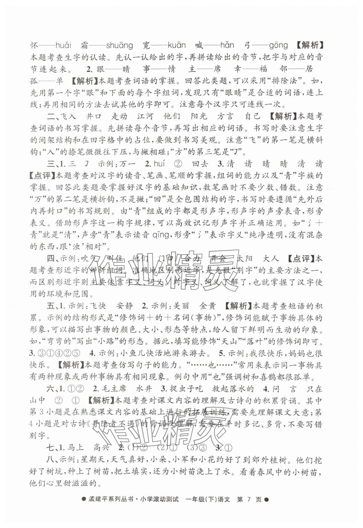 注:目前有些书本章节名称可能整理的还不是很完善,但都是按照顺序排列的,请同学们按照顺序仔细查找。练习册 2025年孟建平小学滚动测试一年级语文下册人教版 答案主要是用来给同学们做完题方便对答案用的,请勿直接抄袭。