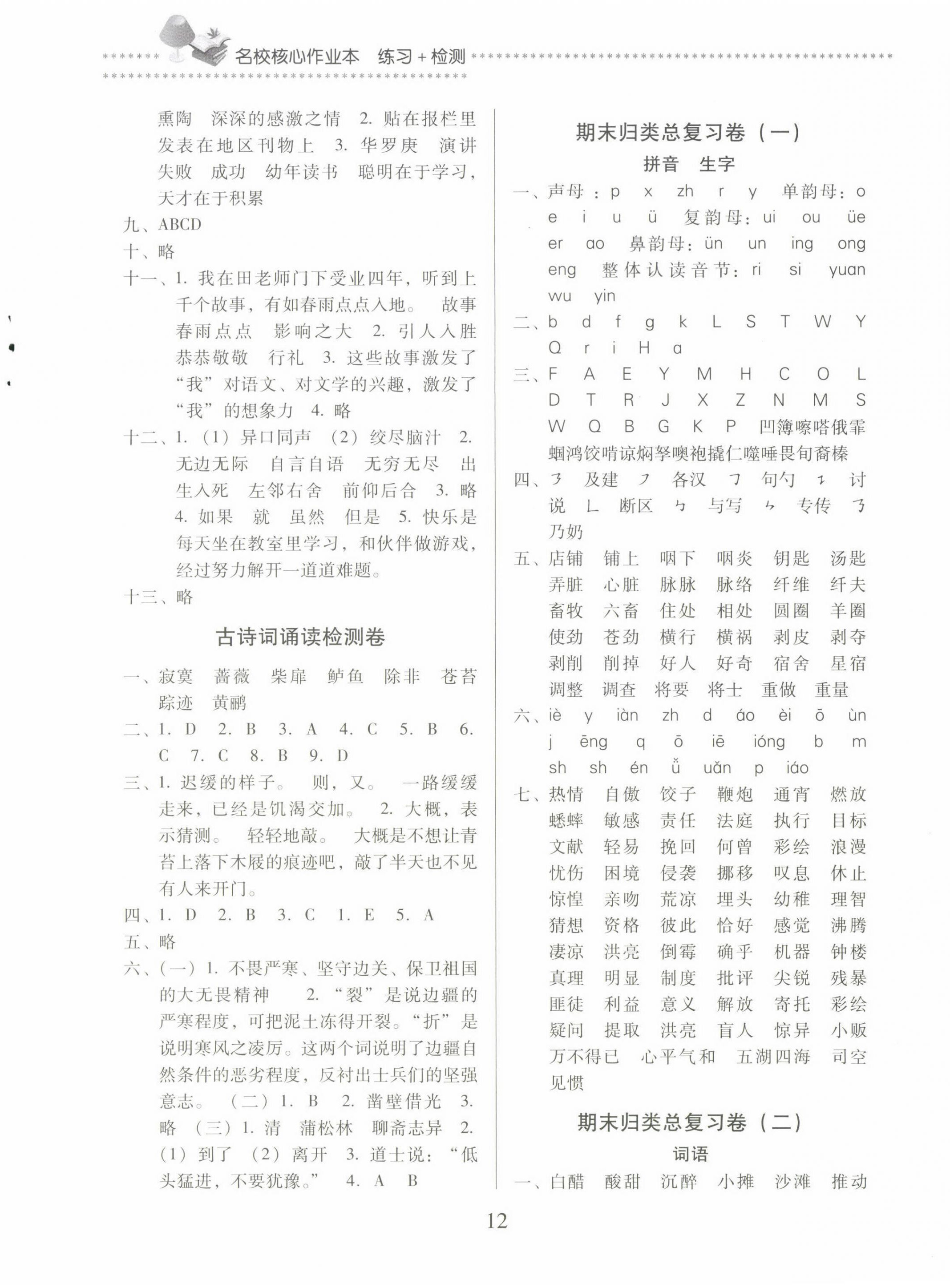 注:目前有些书本章节名称可能整理的还不是很完善,但都是按照顺序排列的,请同学们按照顺序仔细查找。练习册 2025年名校核心作业本练习加检测六年级语文下册人教版 答案主要是用来给同学们做完题方便对答案用的,请勿直接抄袭。