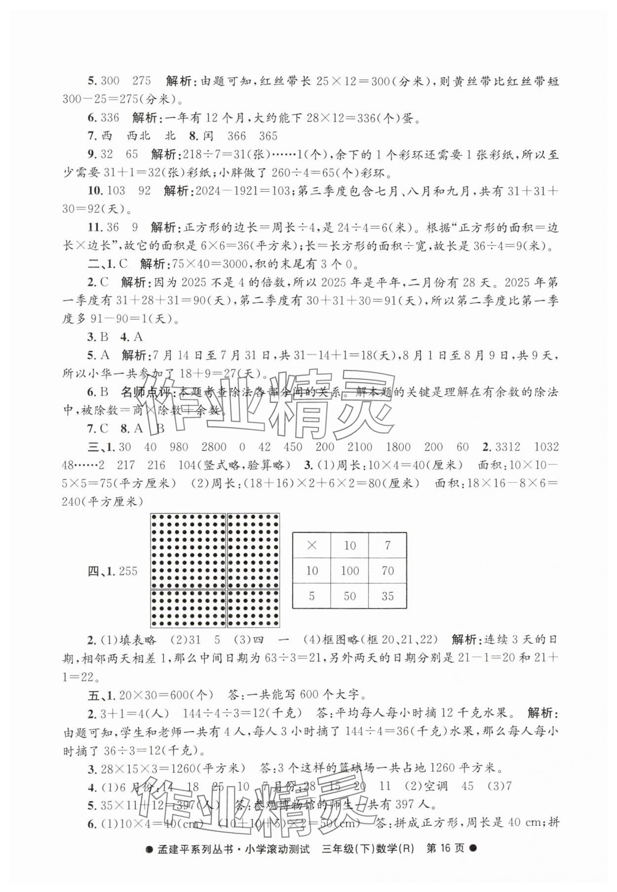 注:目前有些书本章节名称可能整理的还不是很完善,但都是按照顺序排列的,请同学们按照顺序仔细查找。练习册 2025年孟建平小学滚动测试三年级数学下册人教版 答案主要是用来给同学们做完题方便对答案用的,请勿直接抄袭。