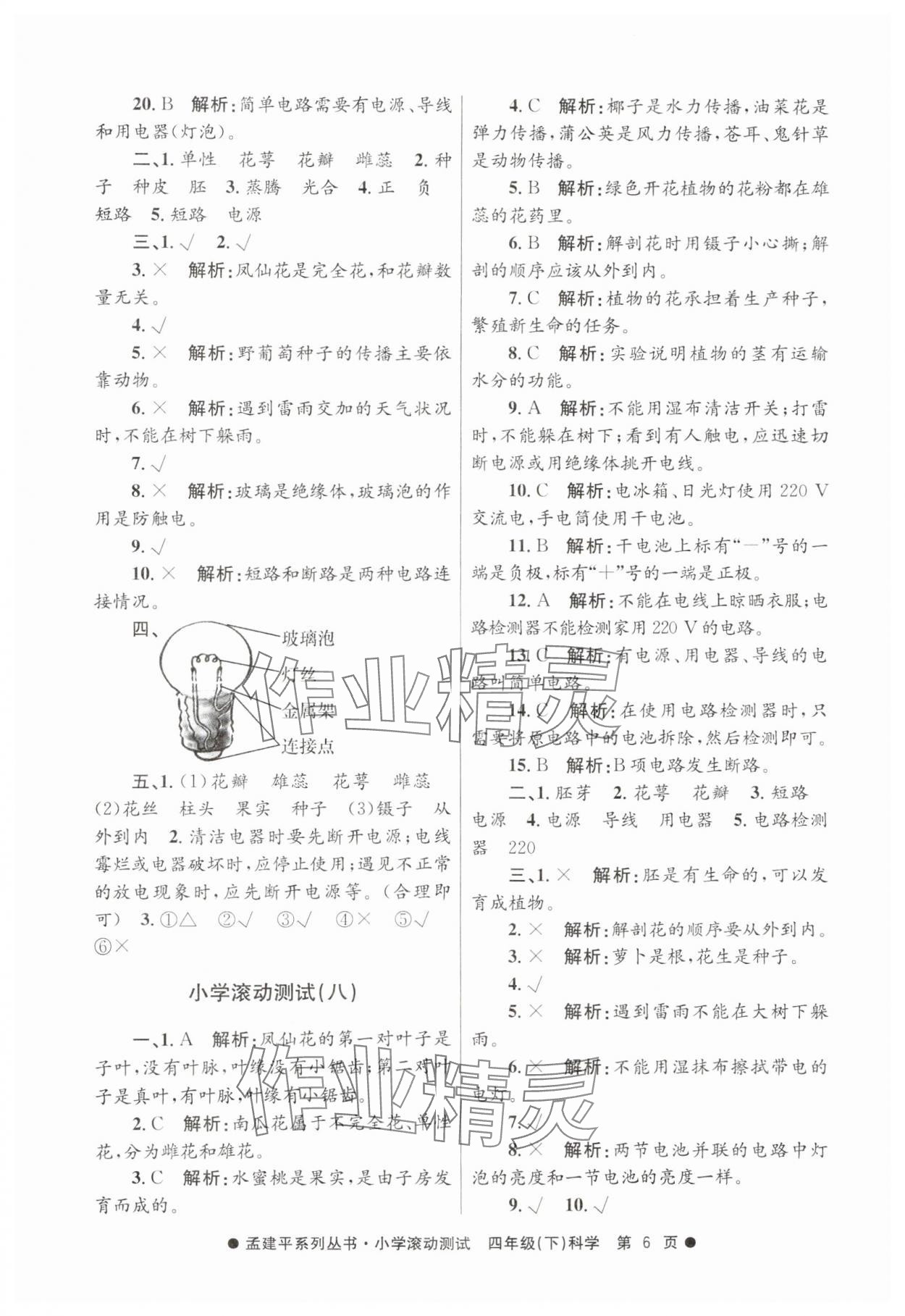 2025年孟建平小学滚动测试四年级科学下册教科版
