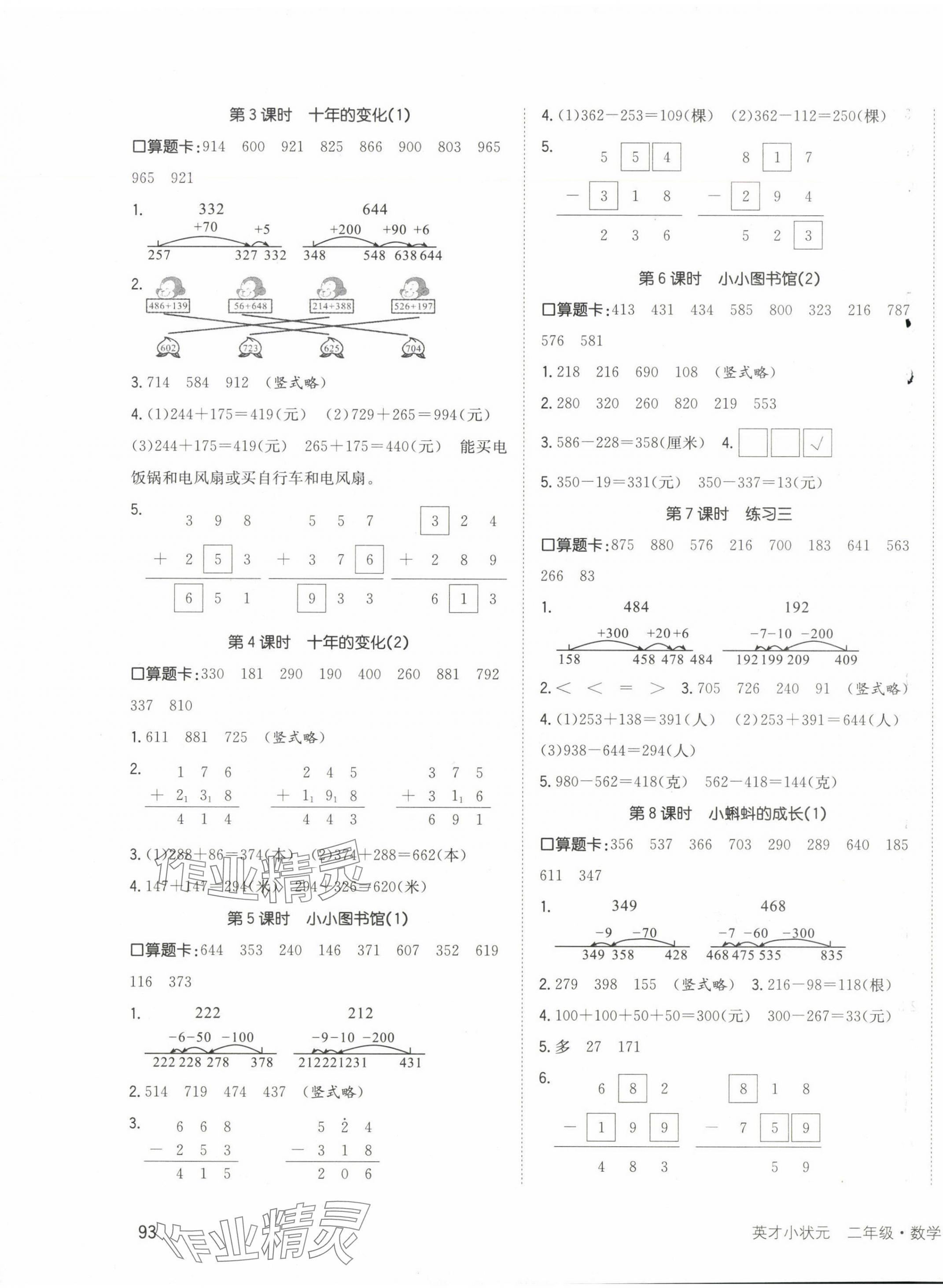 注:目前有些书本章节名称可能整理的还不是很完善,但都是按照顺序排列的,请同学们按照顺序仔细查找。练习册 2025年英才小状元二年级数学下册北师大版 答案主要是用来给同学们做完题方便对答案用的,请勿直接抄袭。